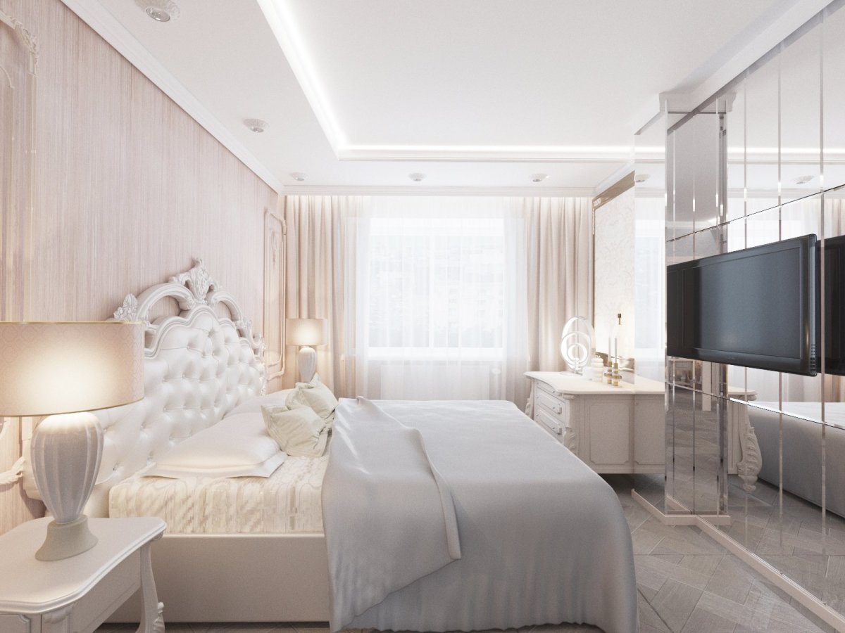 Спальня в классическом стиле в светлых тонах