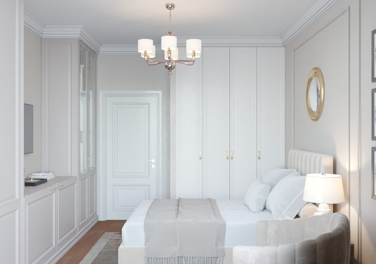 Спальня в стиле современная классика в светлых тонах