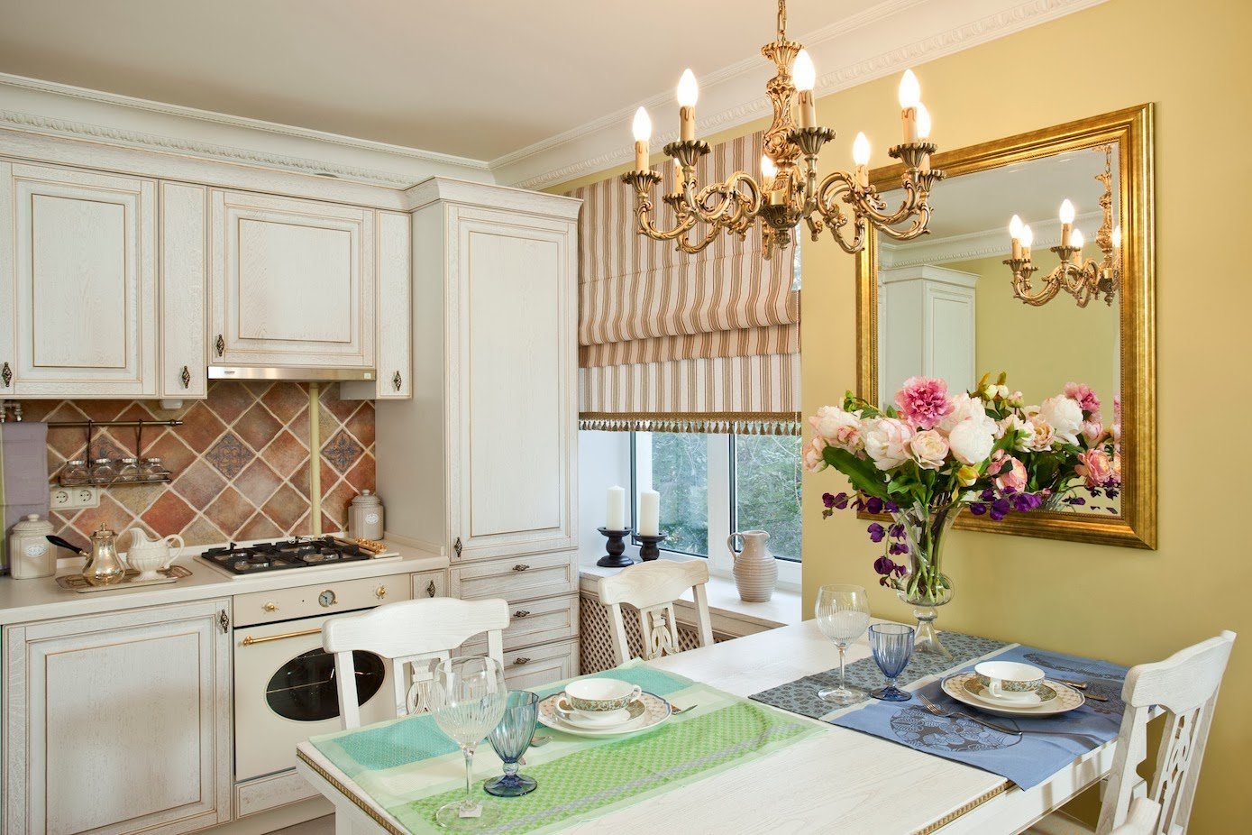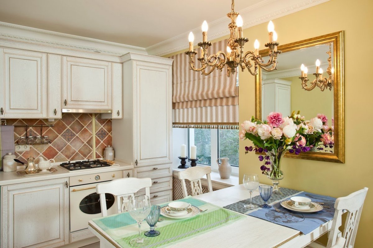 Римские шторы в интерьере кухни Прованс