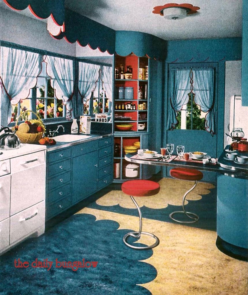 Интерьер кухни в стиле 60х Америка