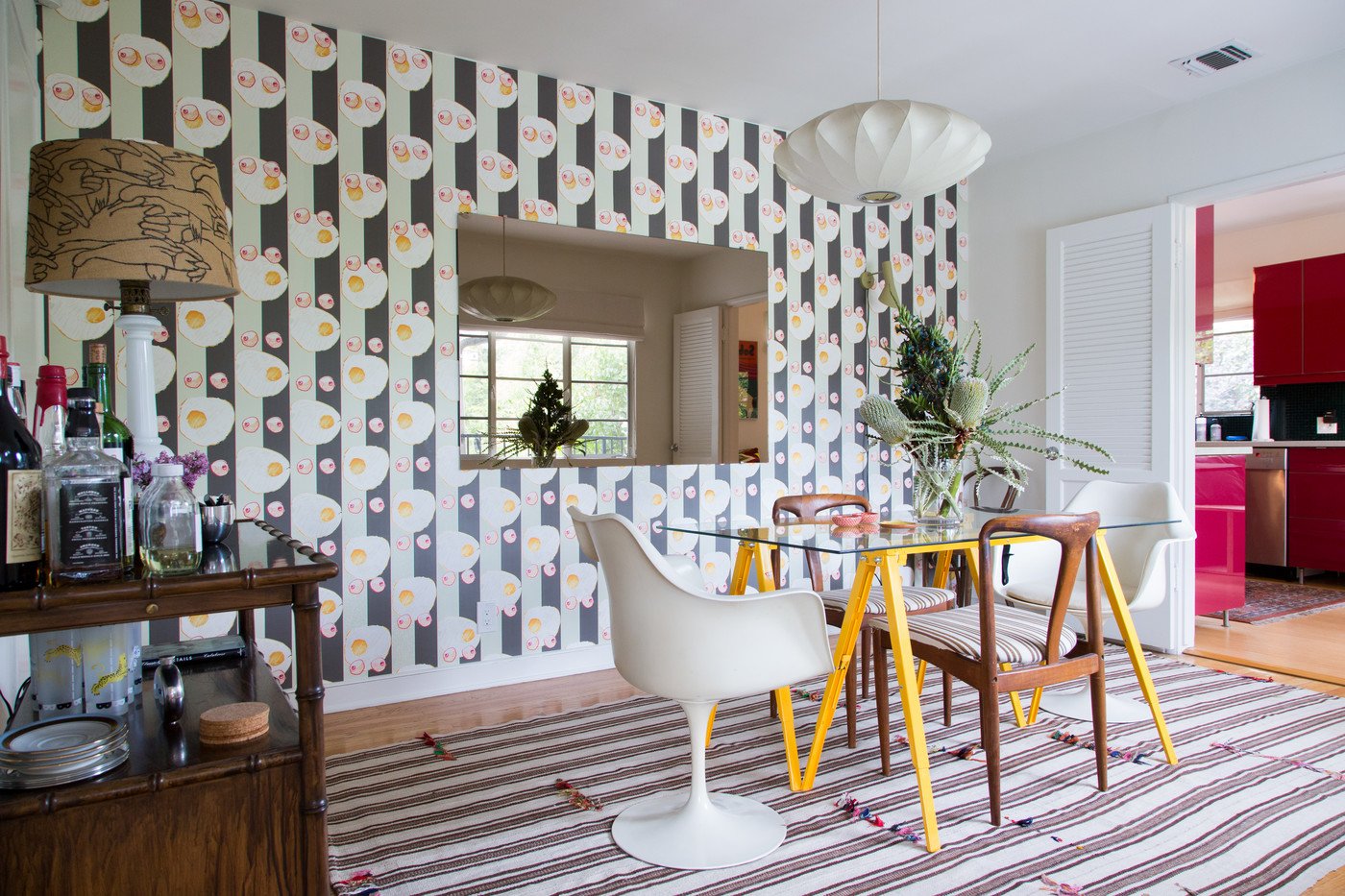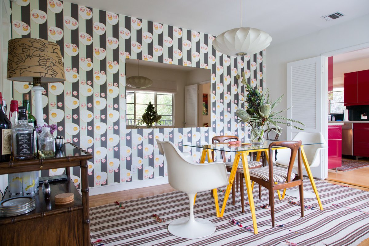 Полосатая стена в интерьере столовой