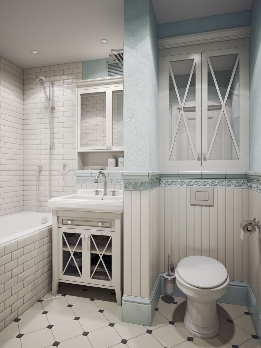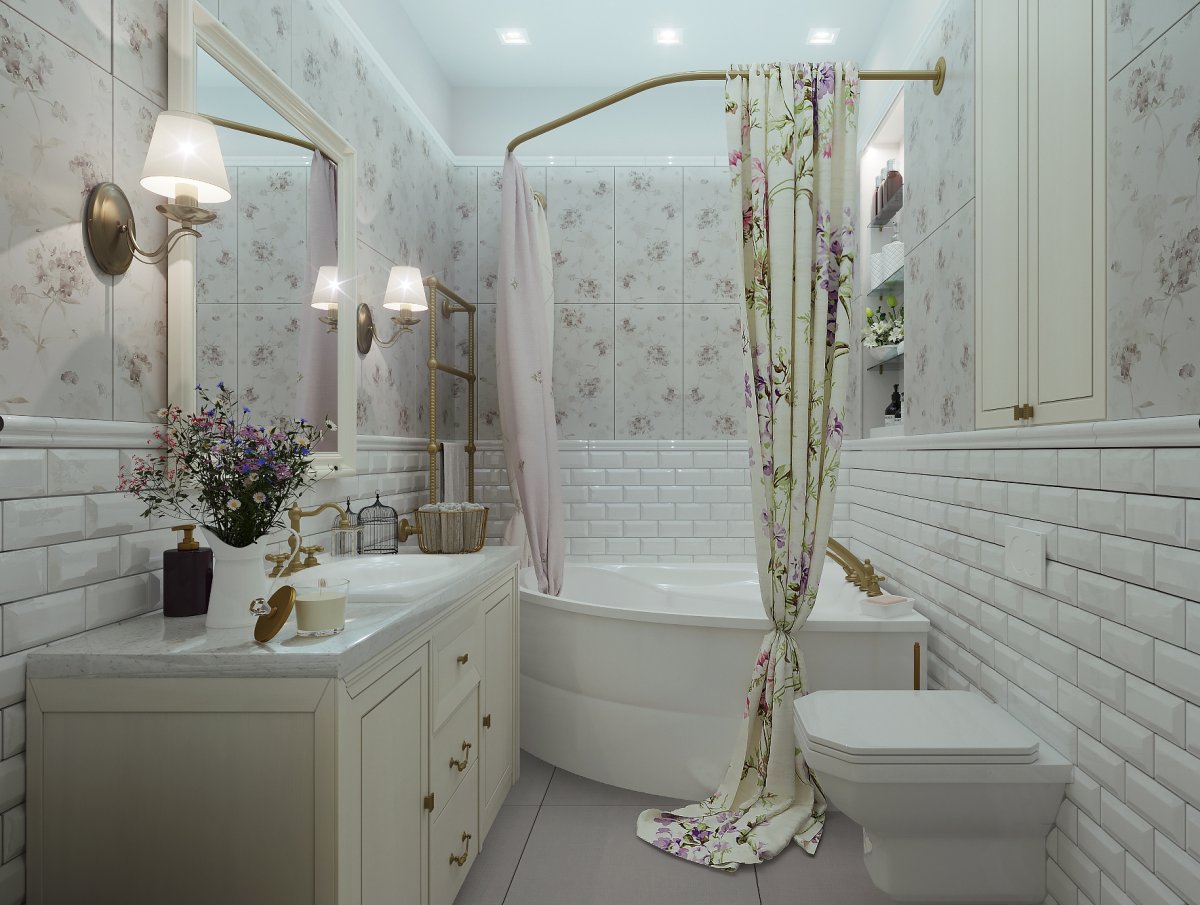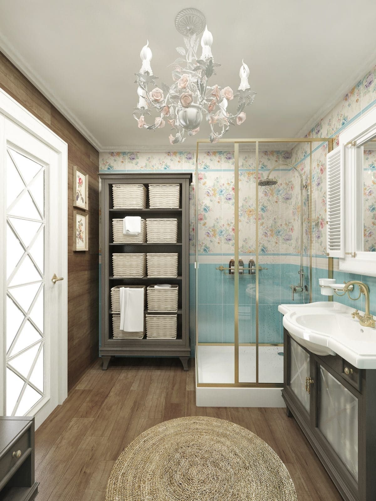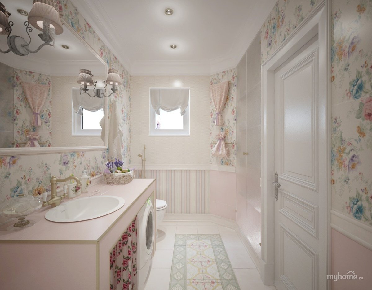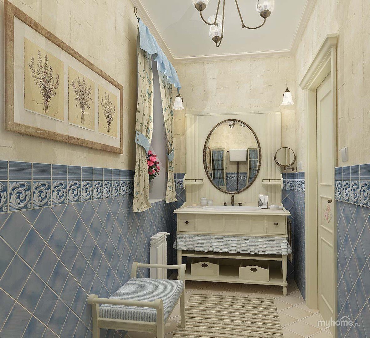 Плитка керамическая для маленькой ванной в стиле Прованс