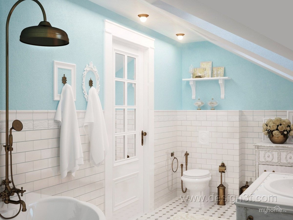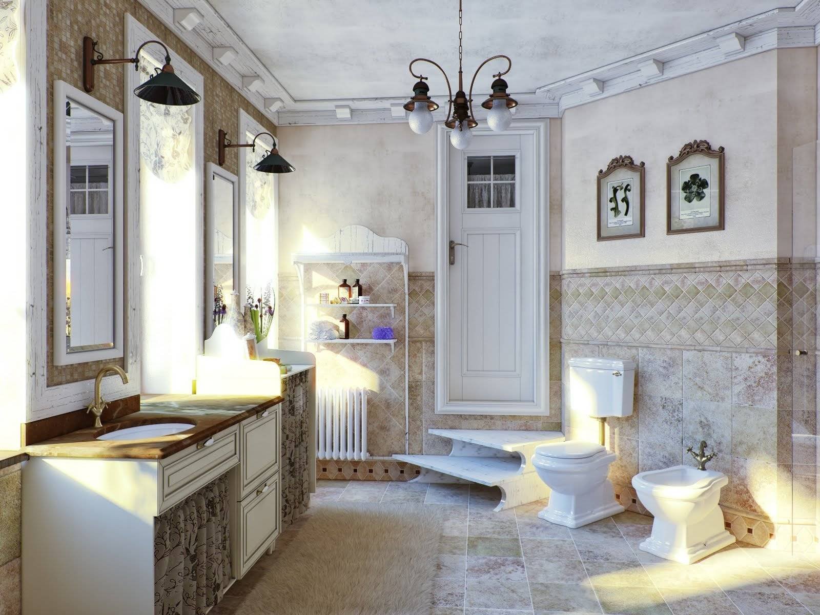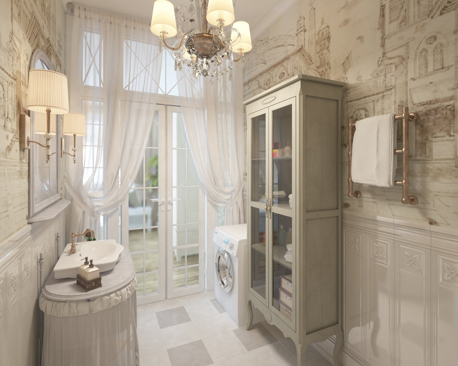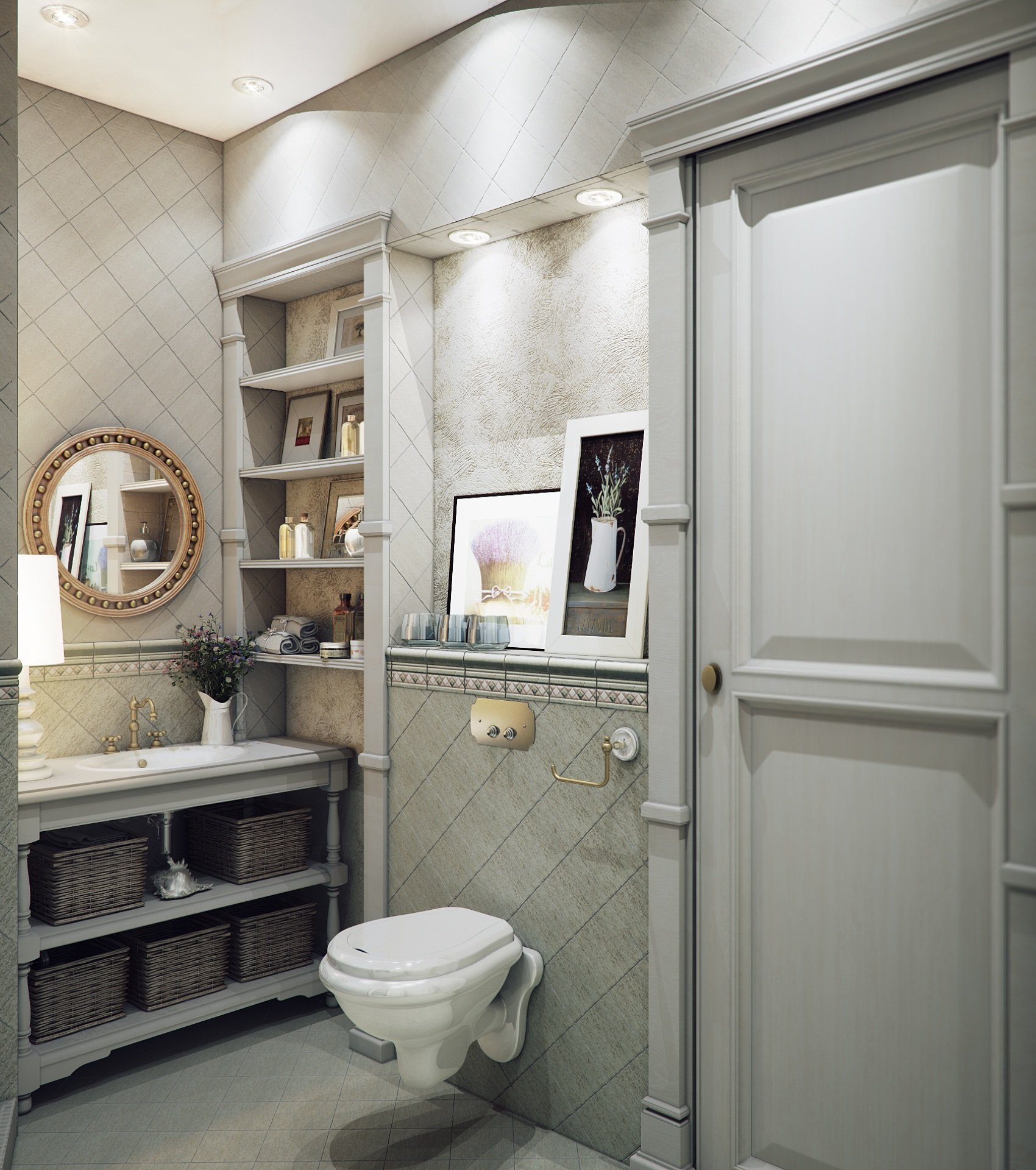 Плитка керамическая для маленькой ванной в стиле Прованс
