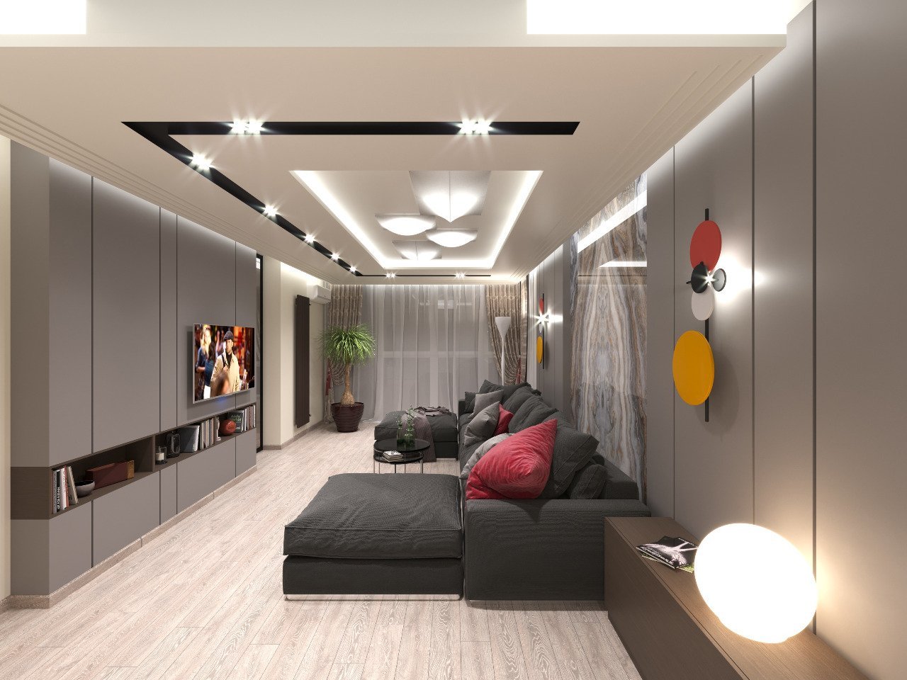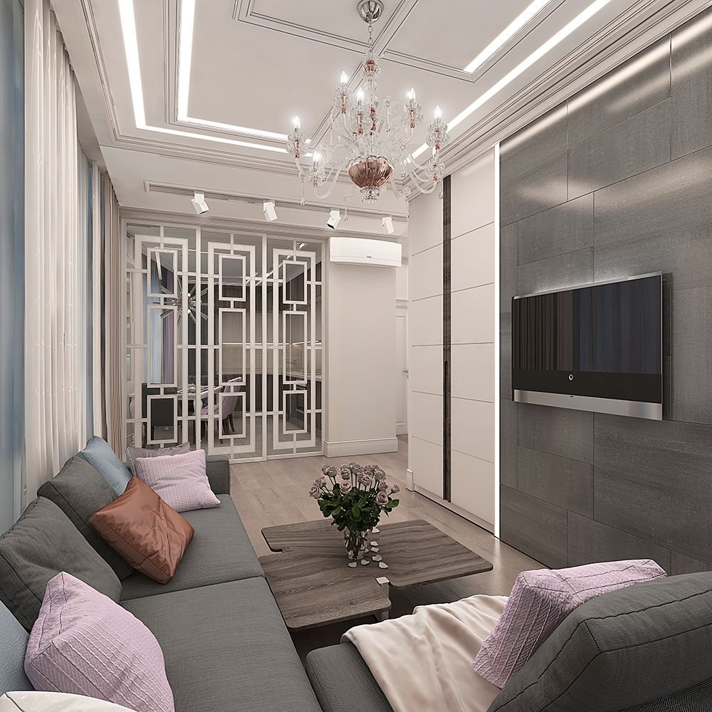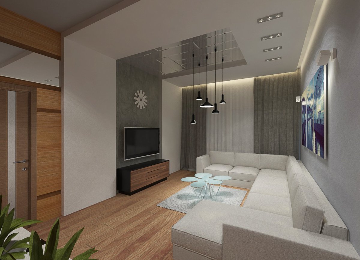 Узкая гостиная в современном стиле