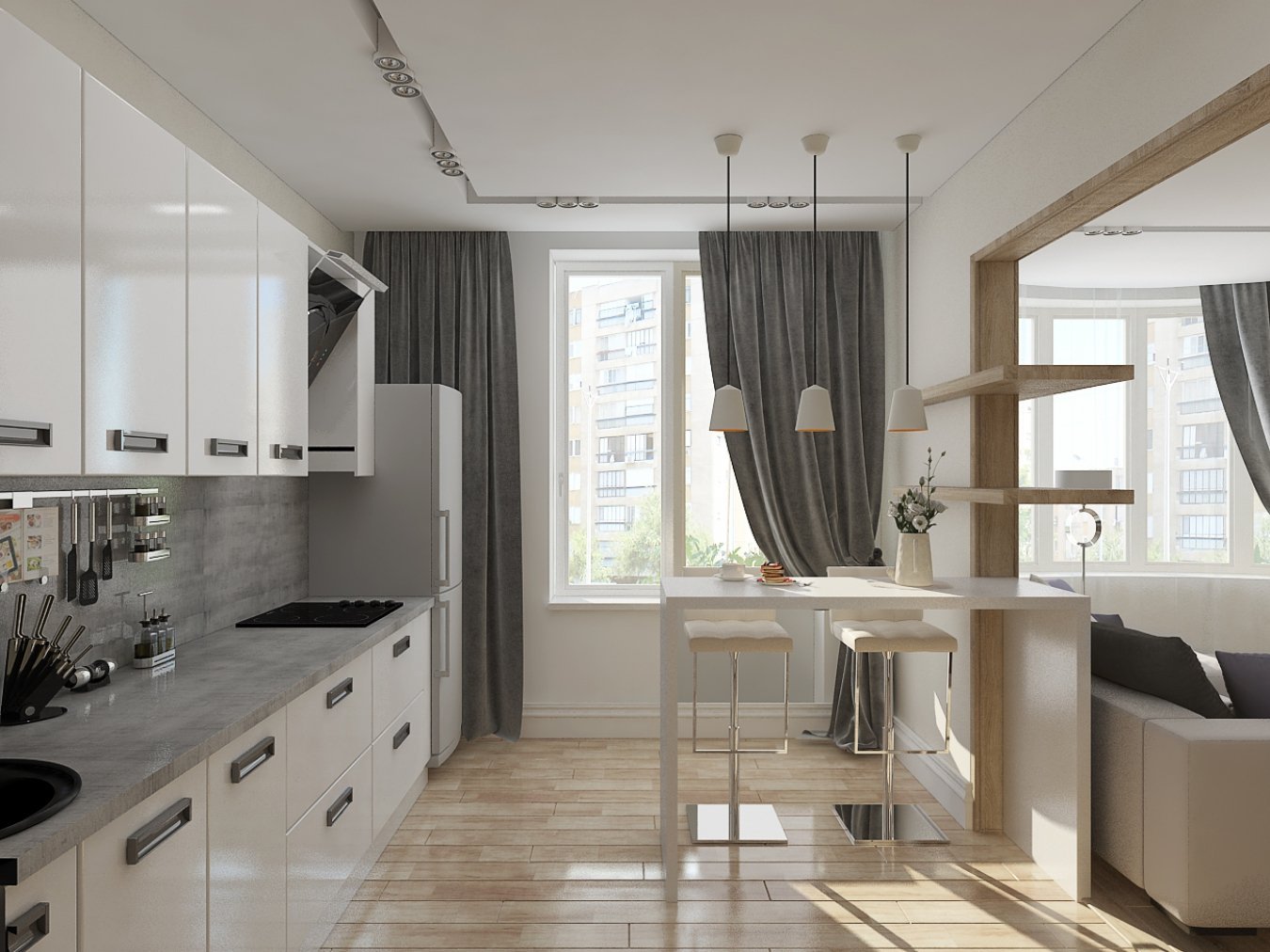 Кухня студия в трехкомнатной квартире