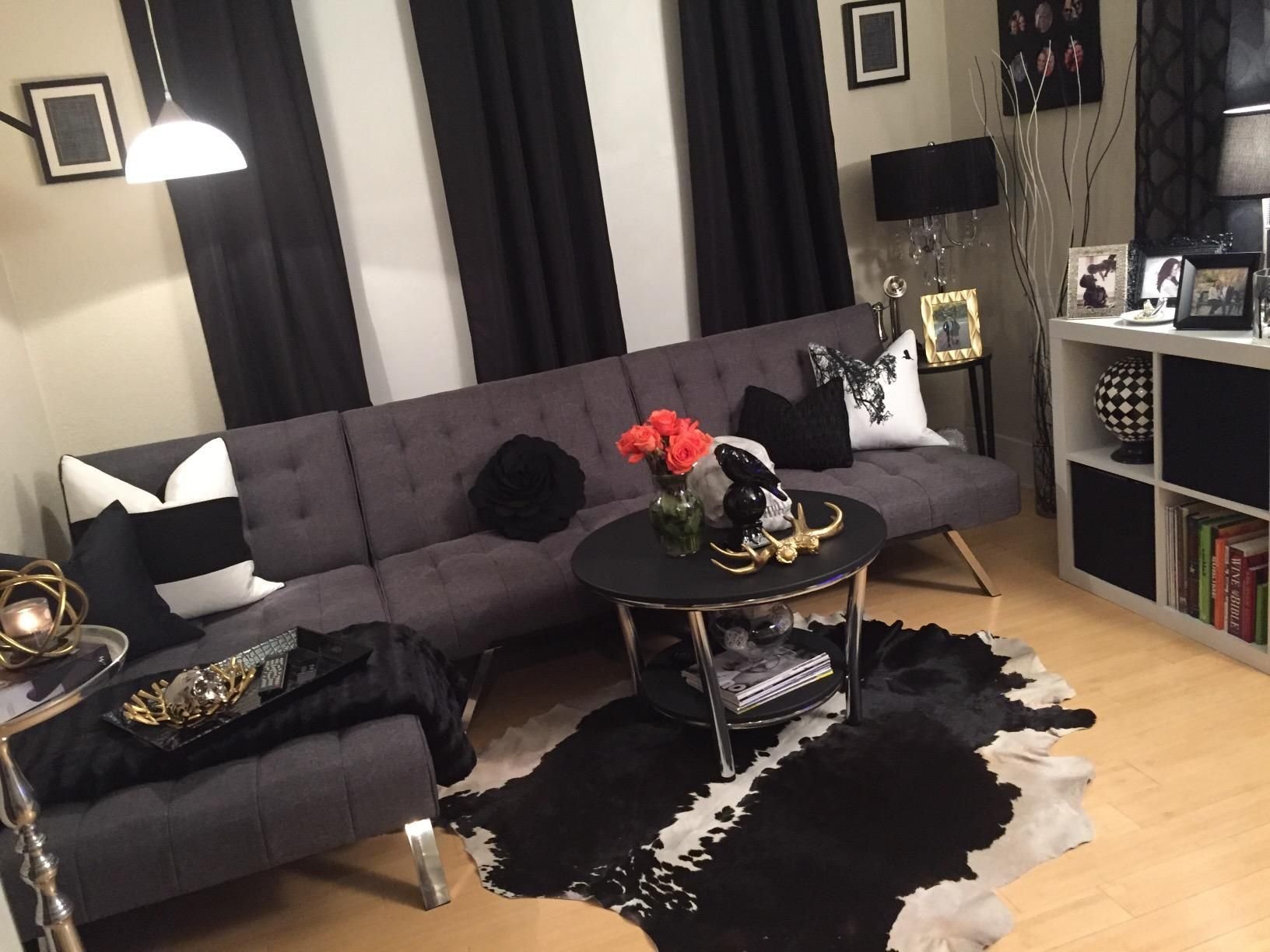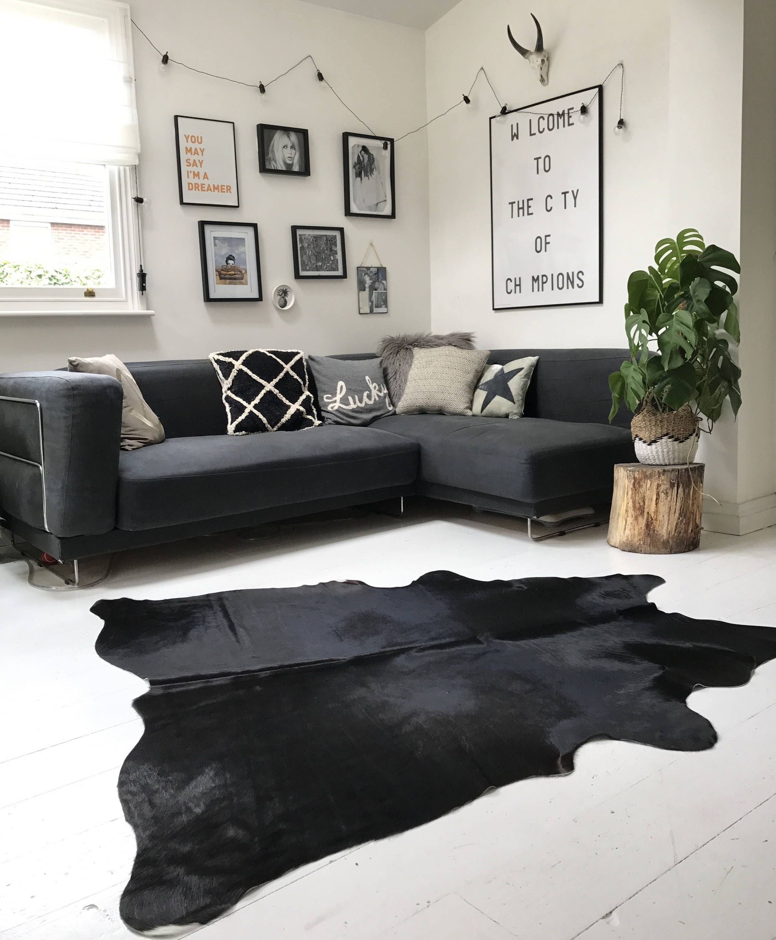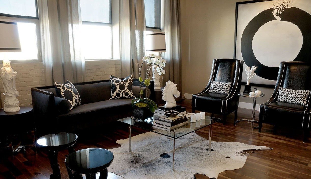 Интерьер с черной коровьей шкурой