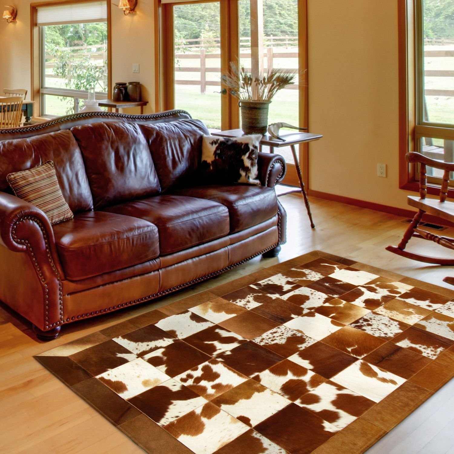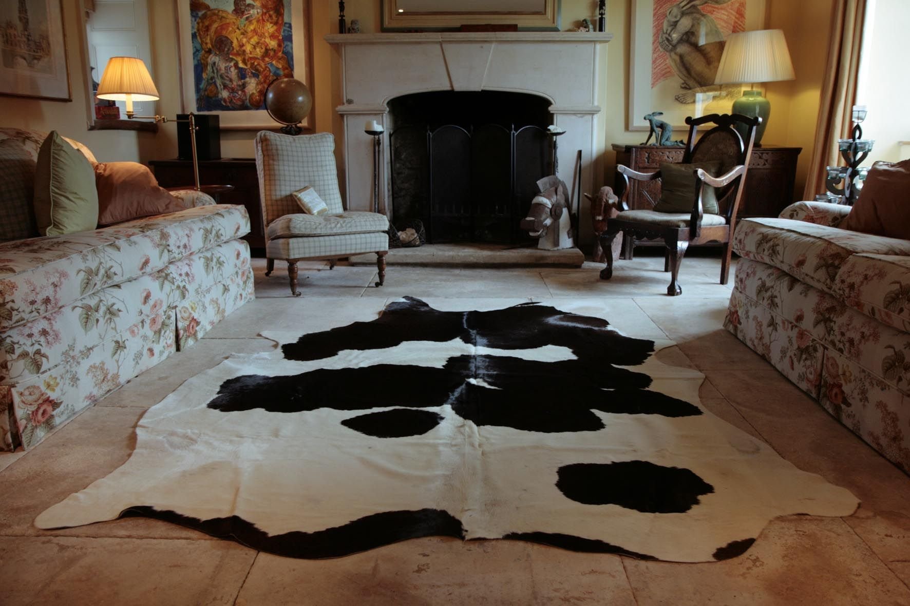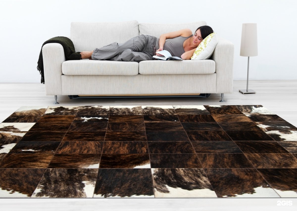 Ковер из коровьей шкуры в интерьере