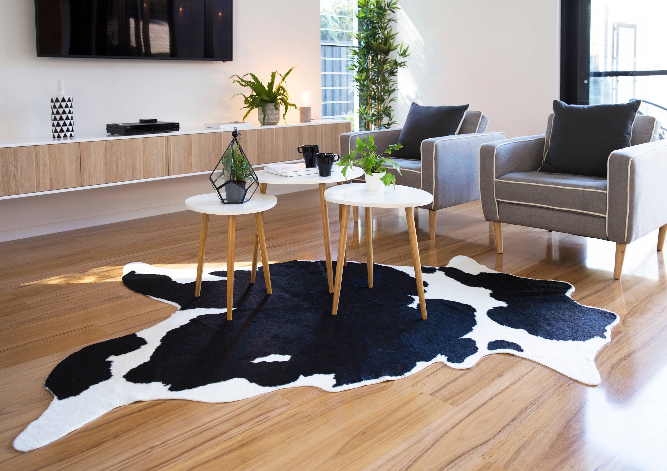 Шкура коровы в интерьере гостиной