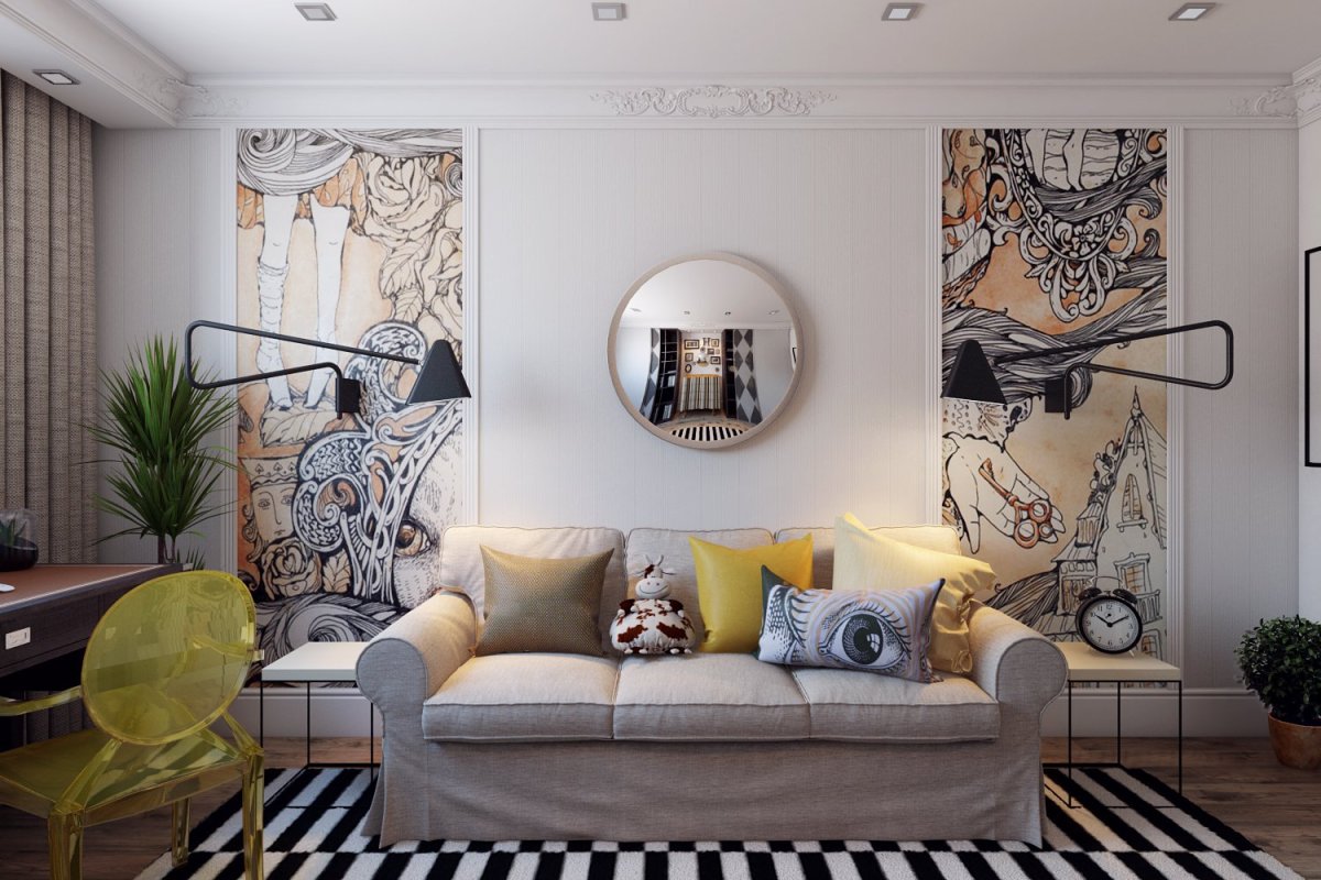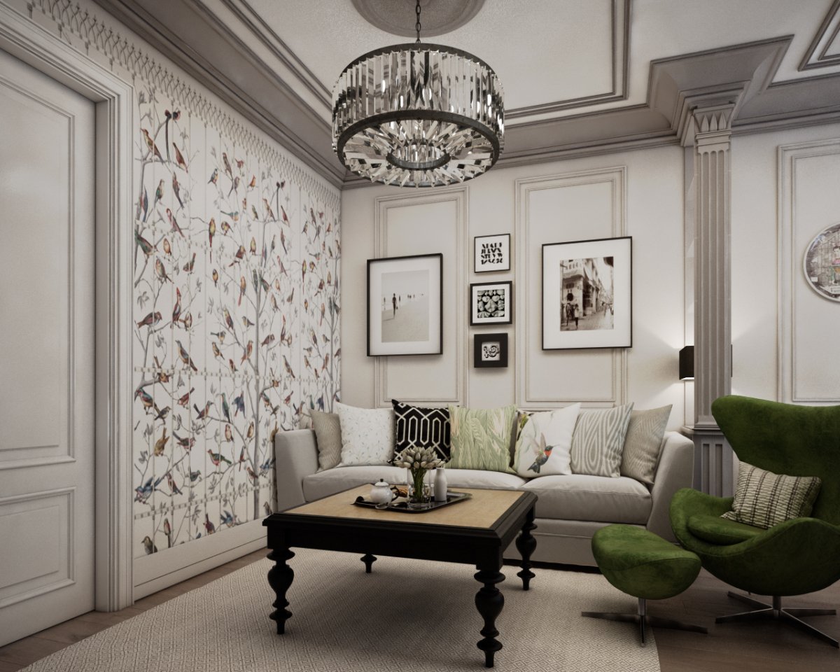 Молдинги для стен в интерьере гостиной в стиле Неоклассика
