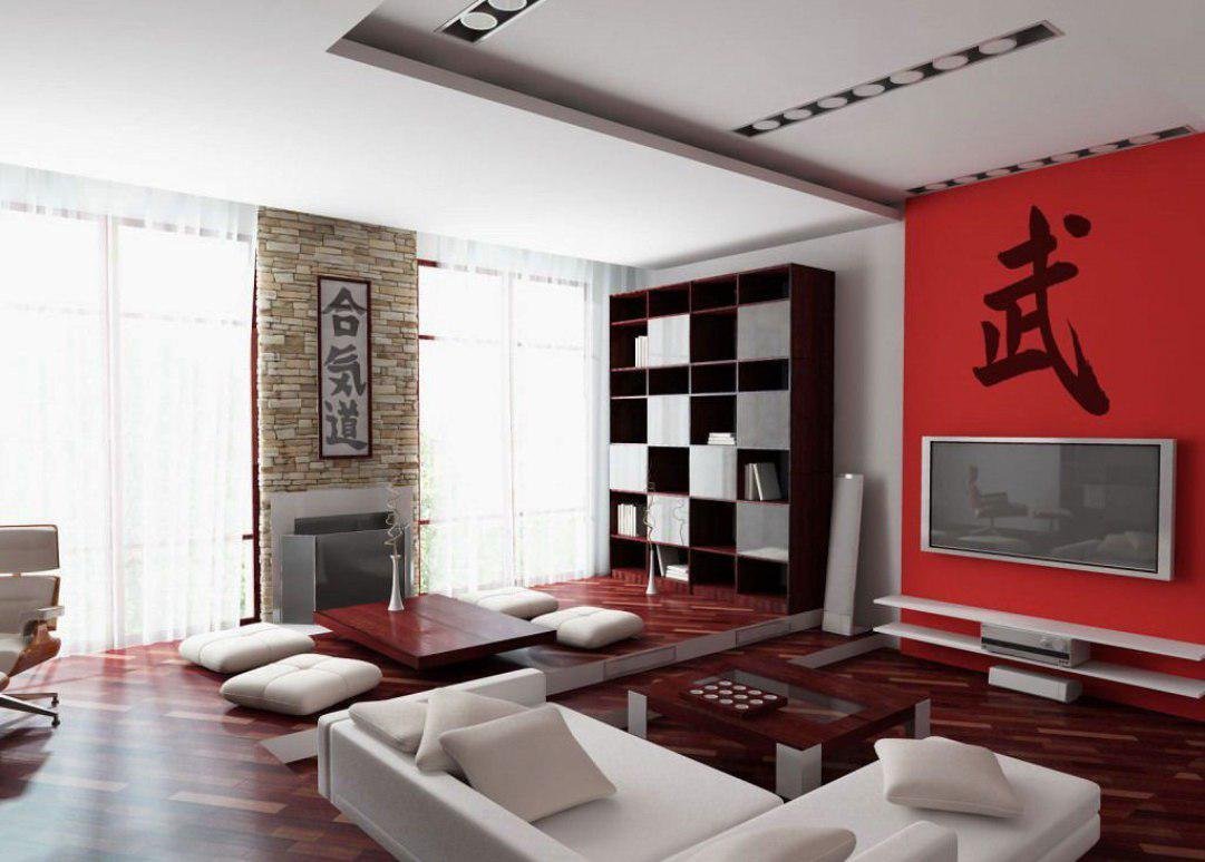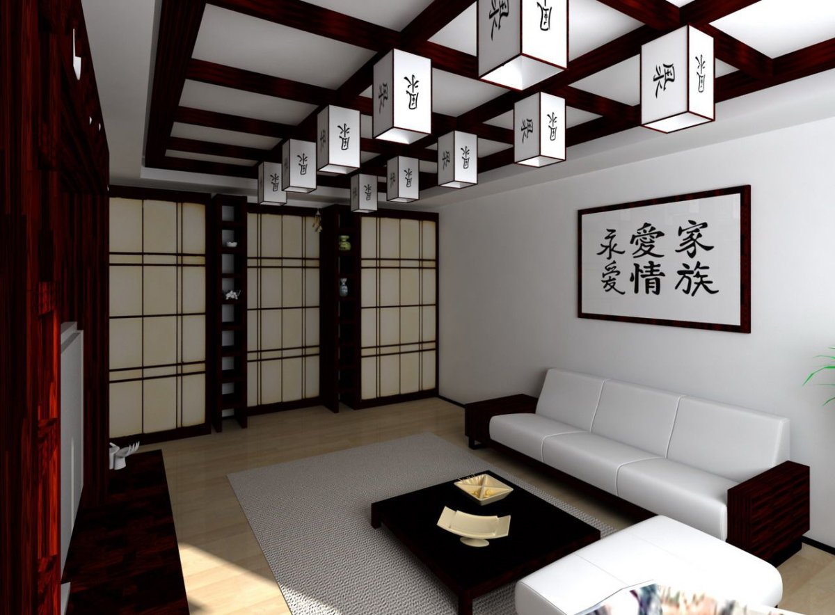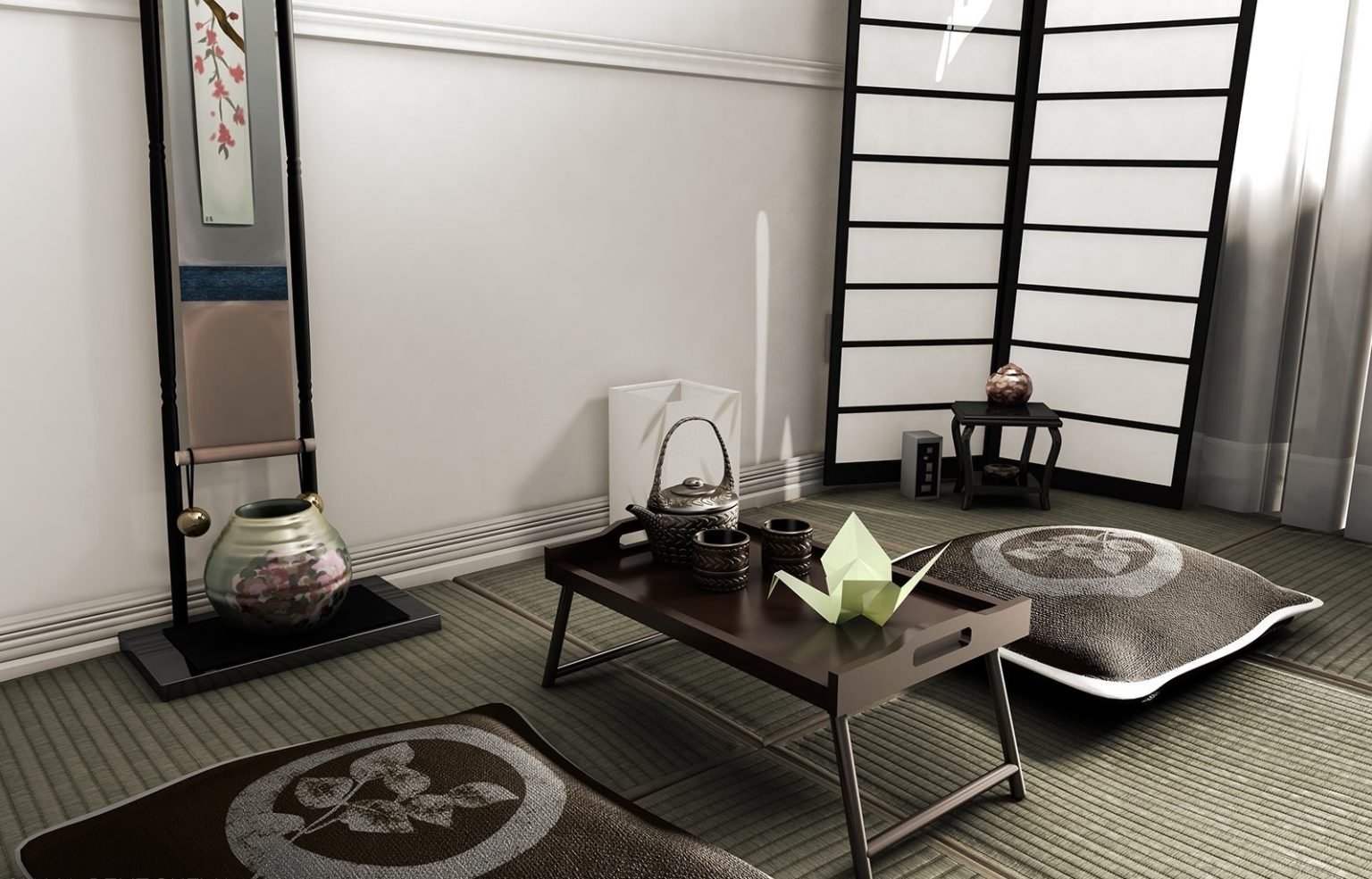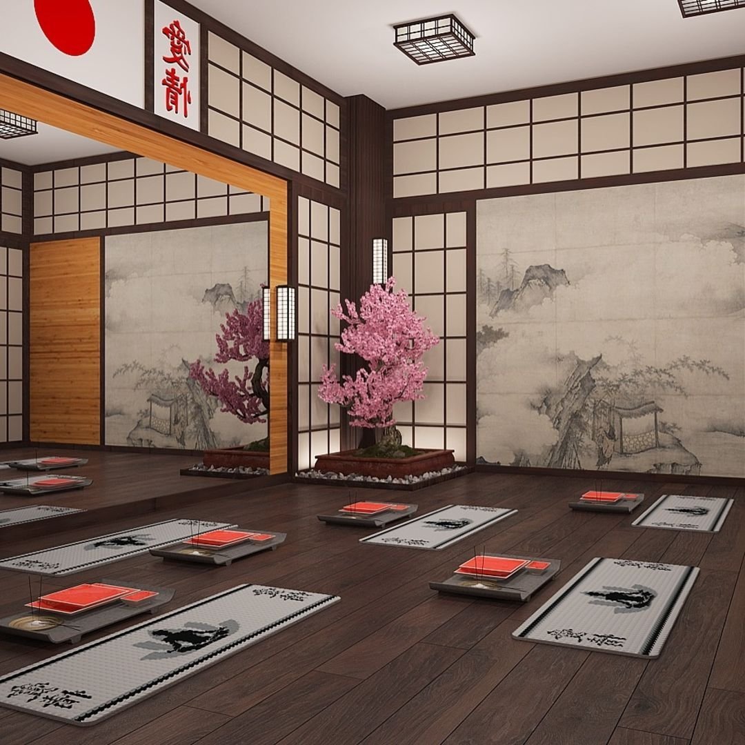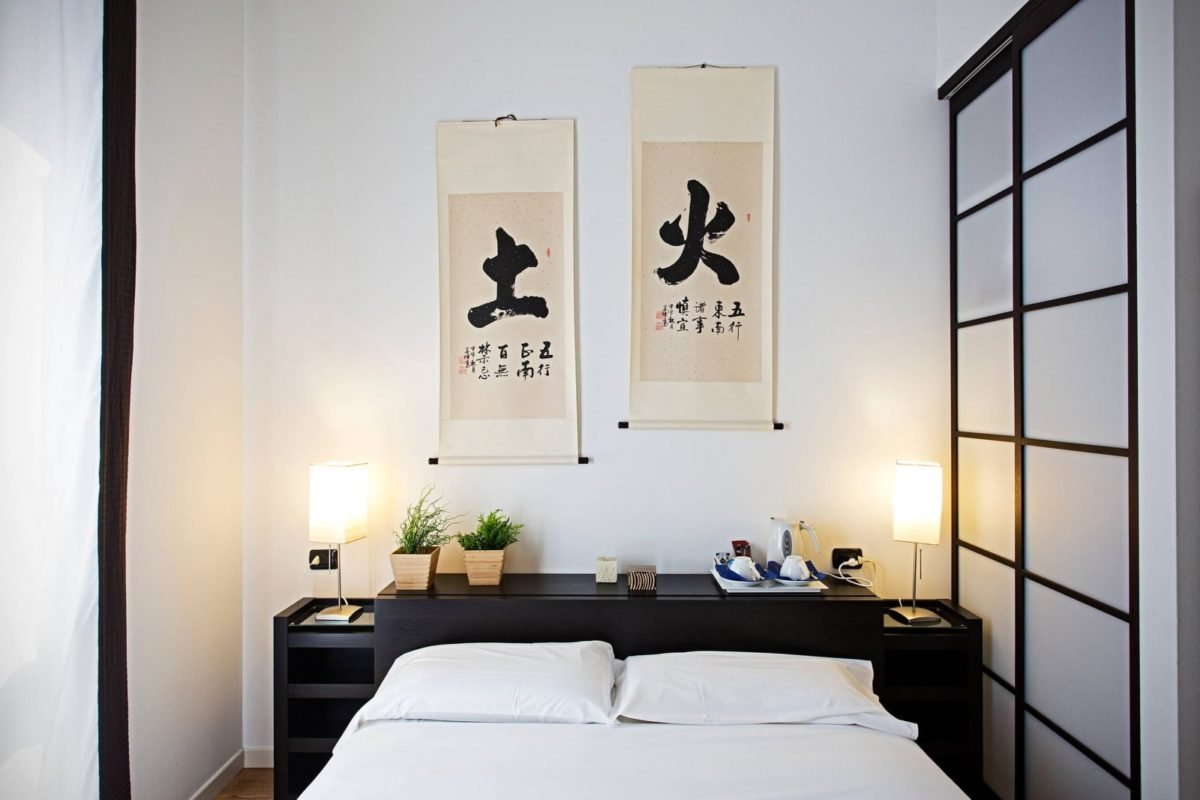 Обои Сакура в интерьере спальни в японском Восточном стиле