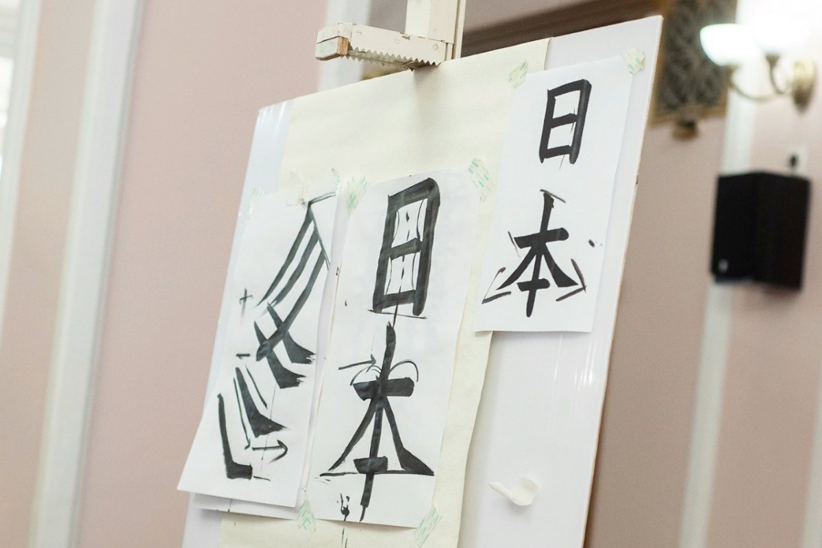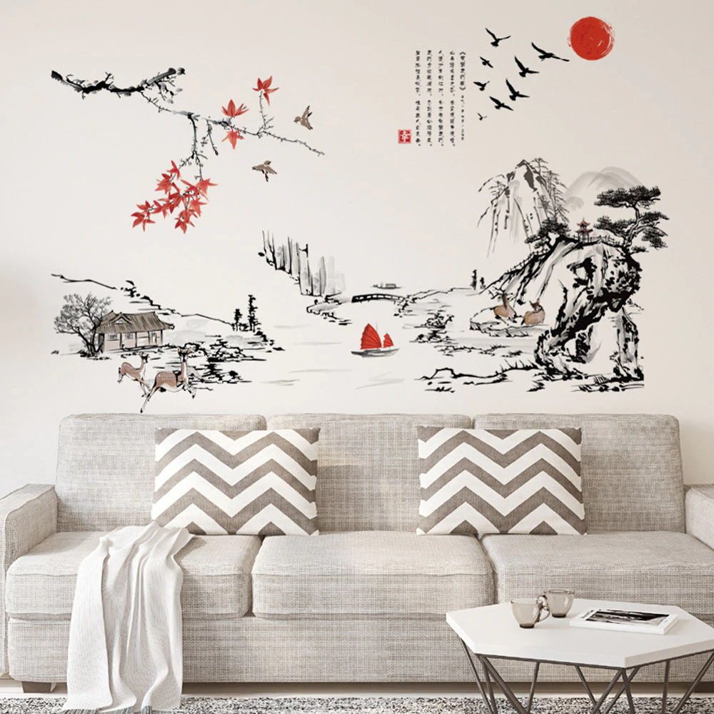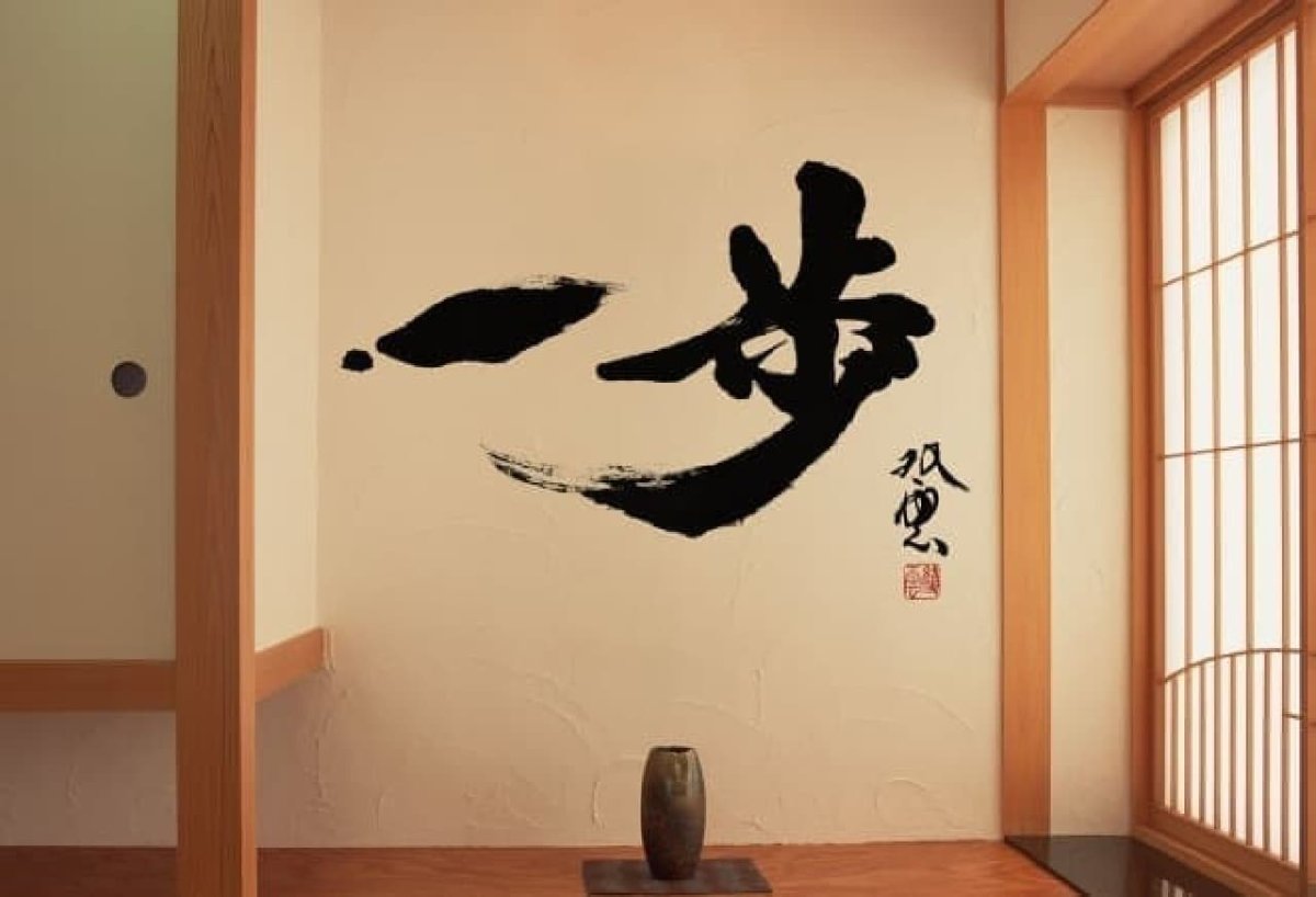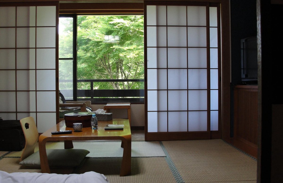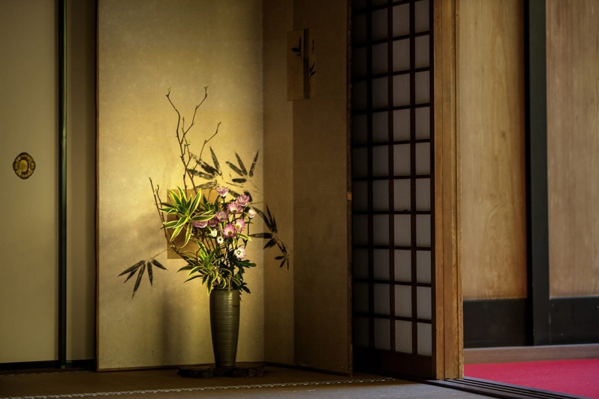Обои Сакура в интерьере спальни в японском Восточном стиле