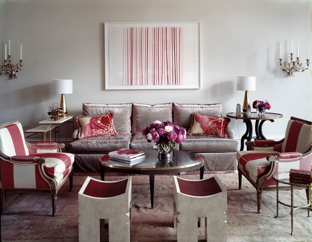 Сочетание серого и бордового в интерьере