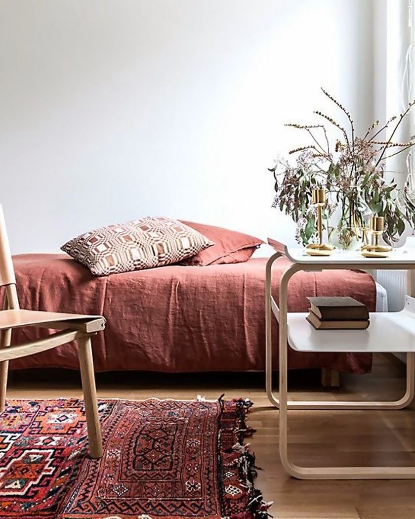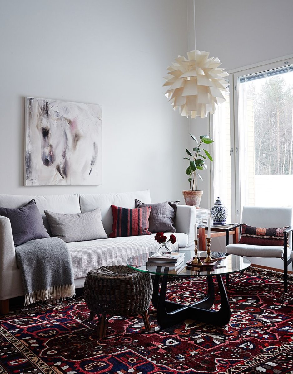 Красный ковер в скандинавском интерьере