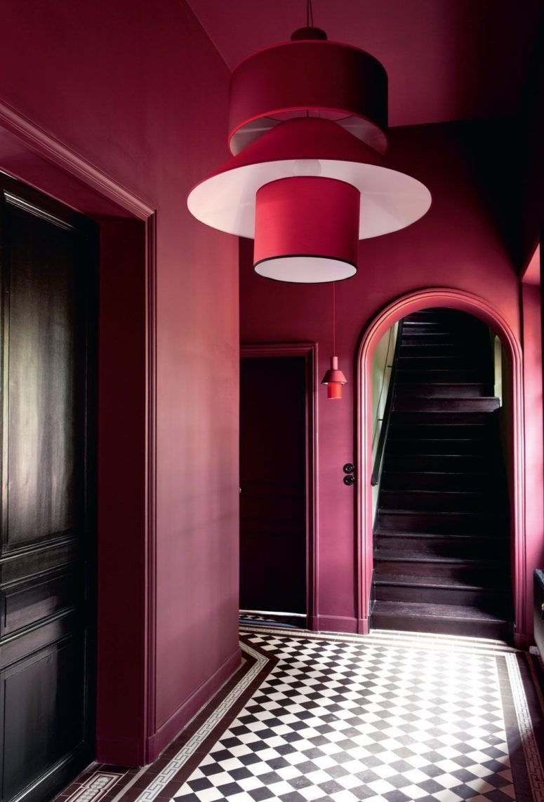 Бордовые стены в интерьере