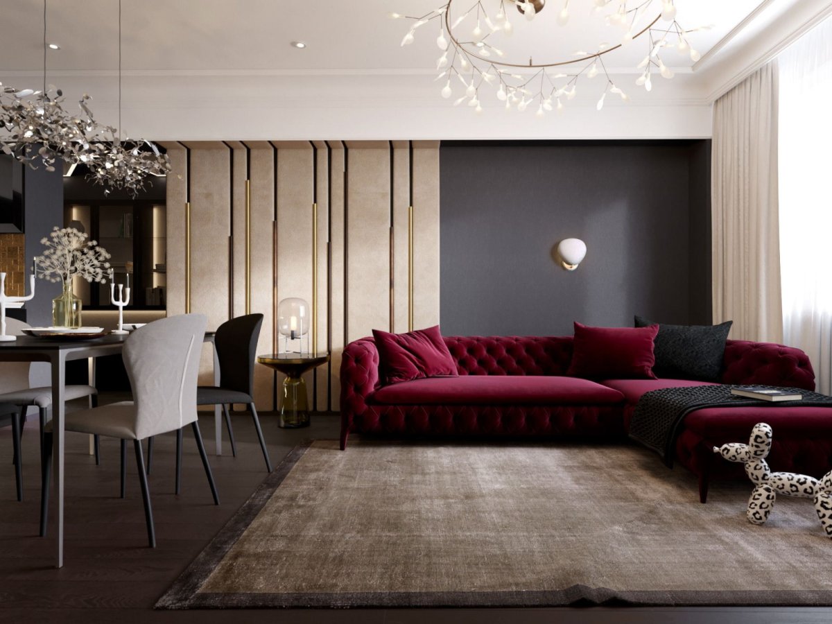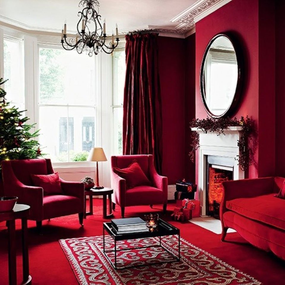 Бордовый цвет в интерьере гостиной