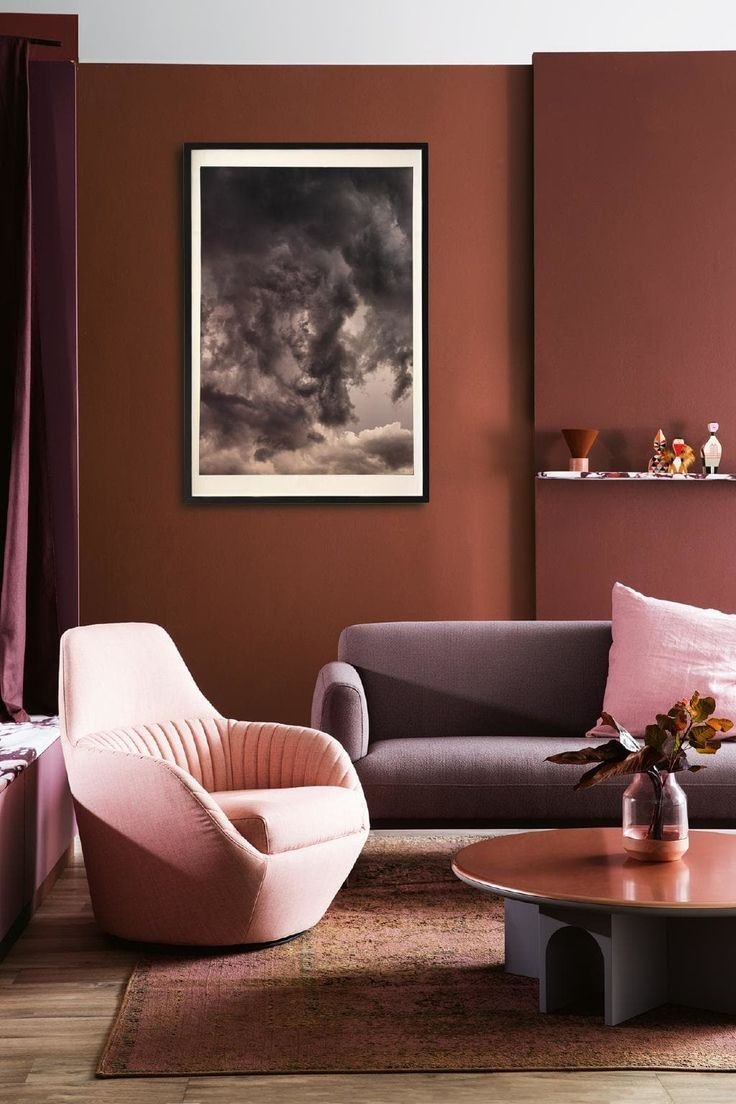 Интерьер гостиной в марсала гамме