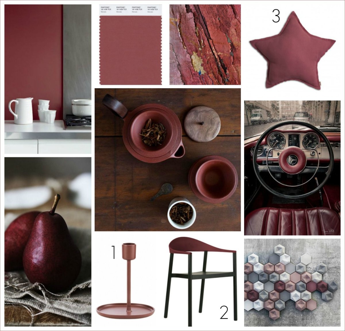 Мудборд в цвете марсала