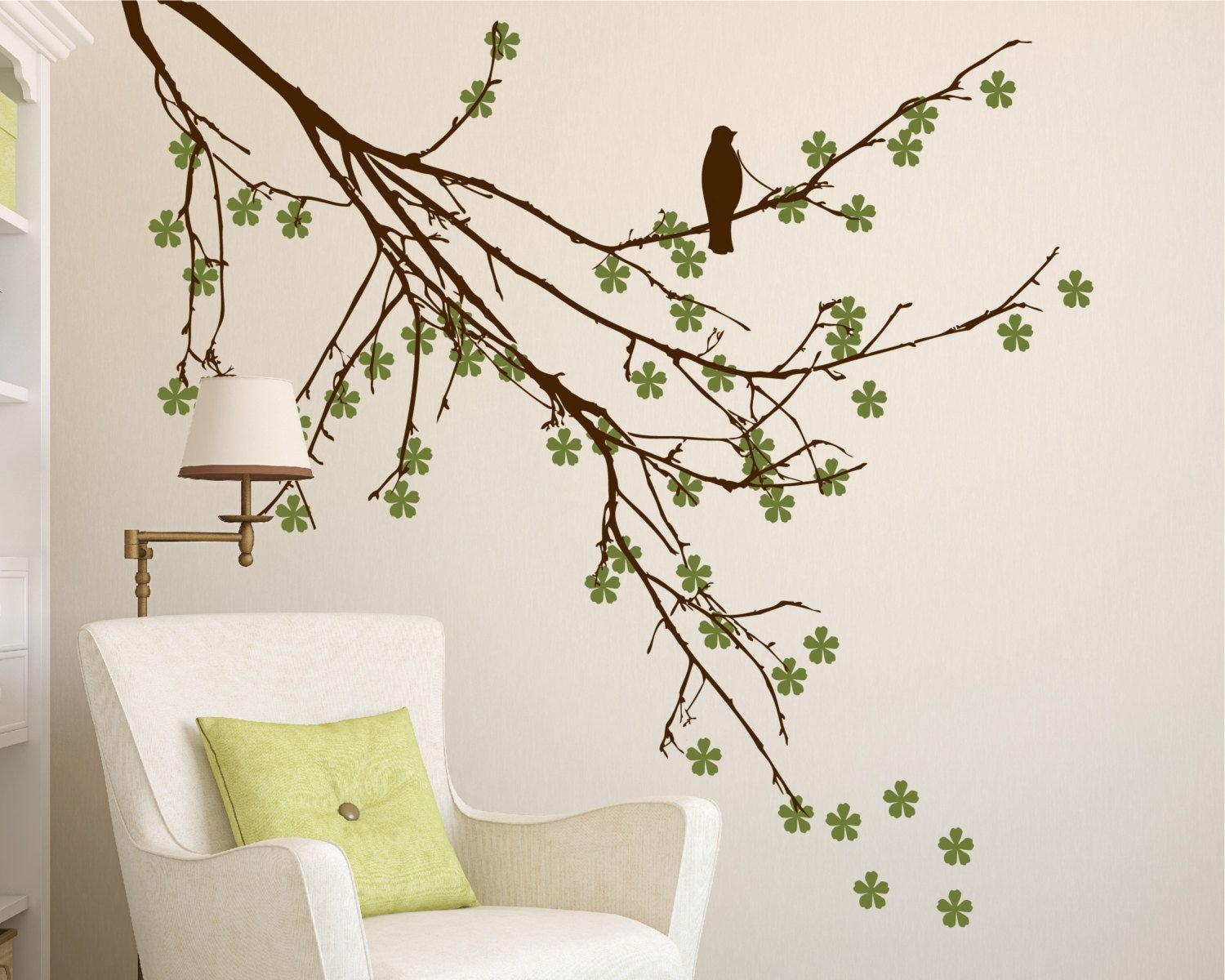 Ветка дерева в интерьере на стене
