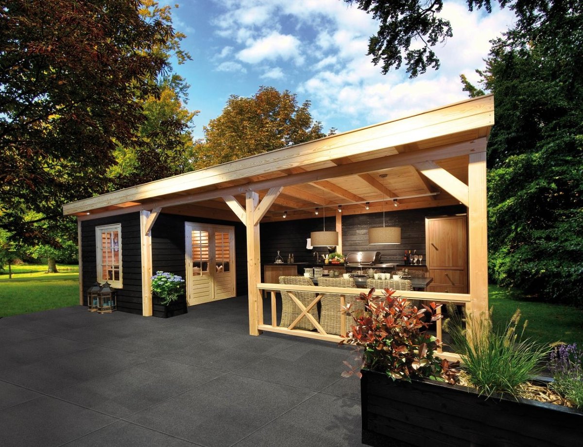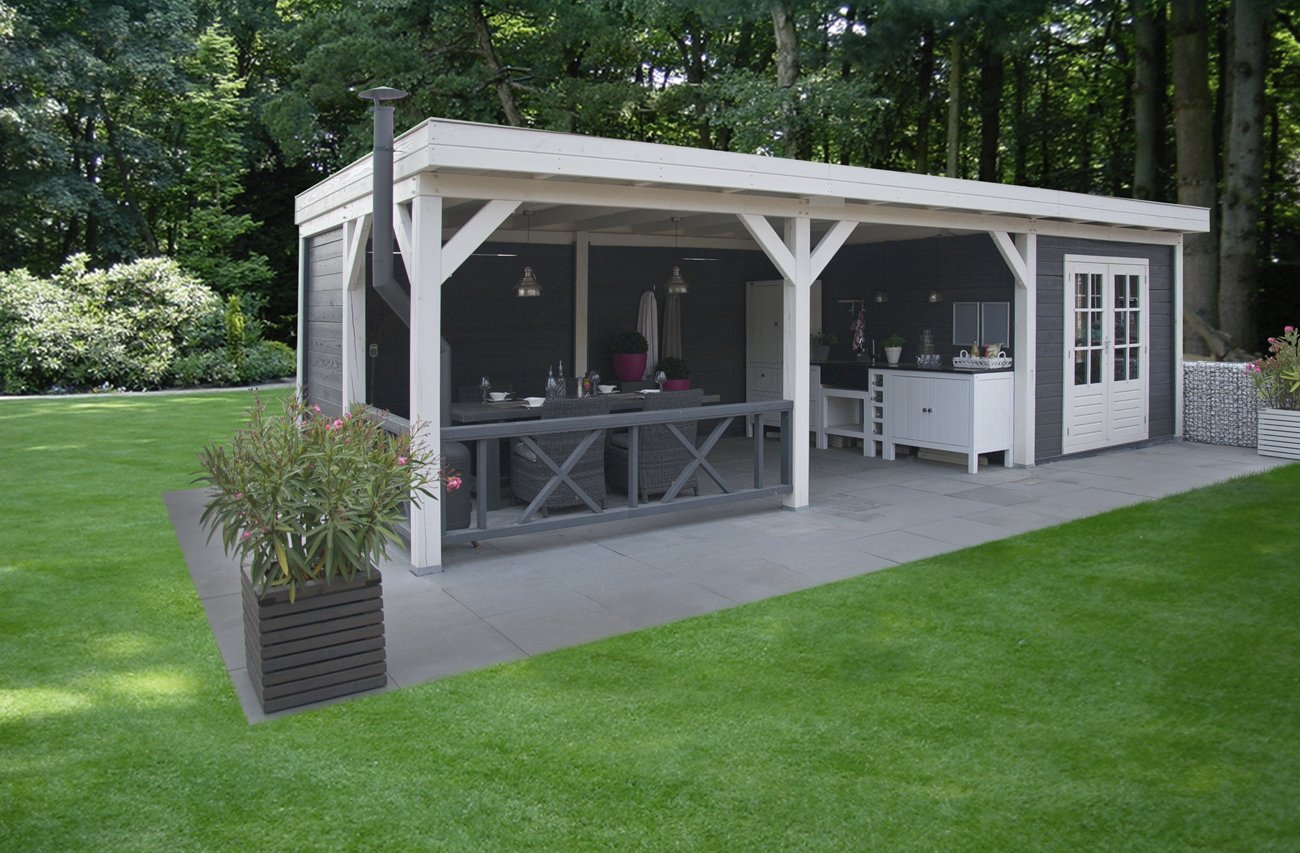 Летняя кухня с плоской крышей