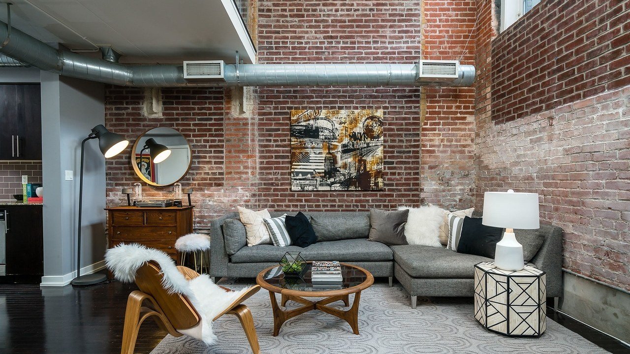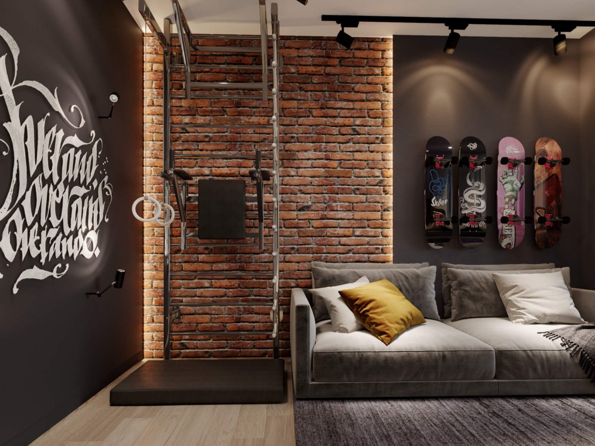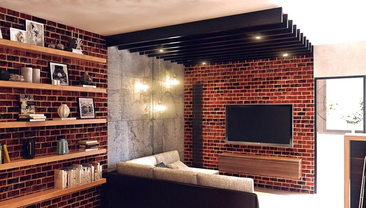 Гостиная в стиле лофт акцентная стена