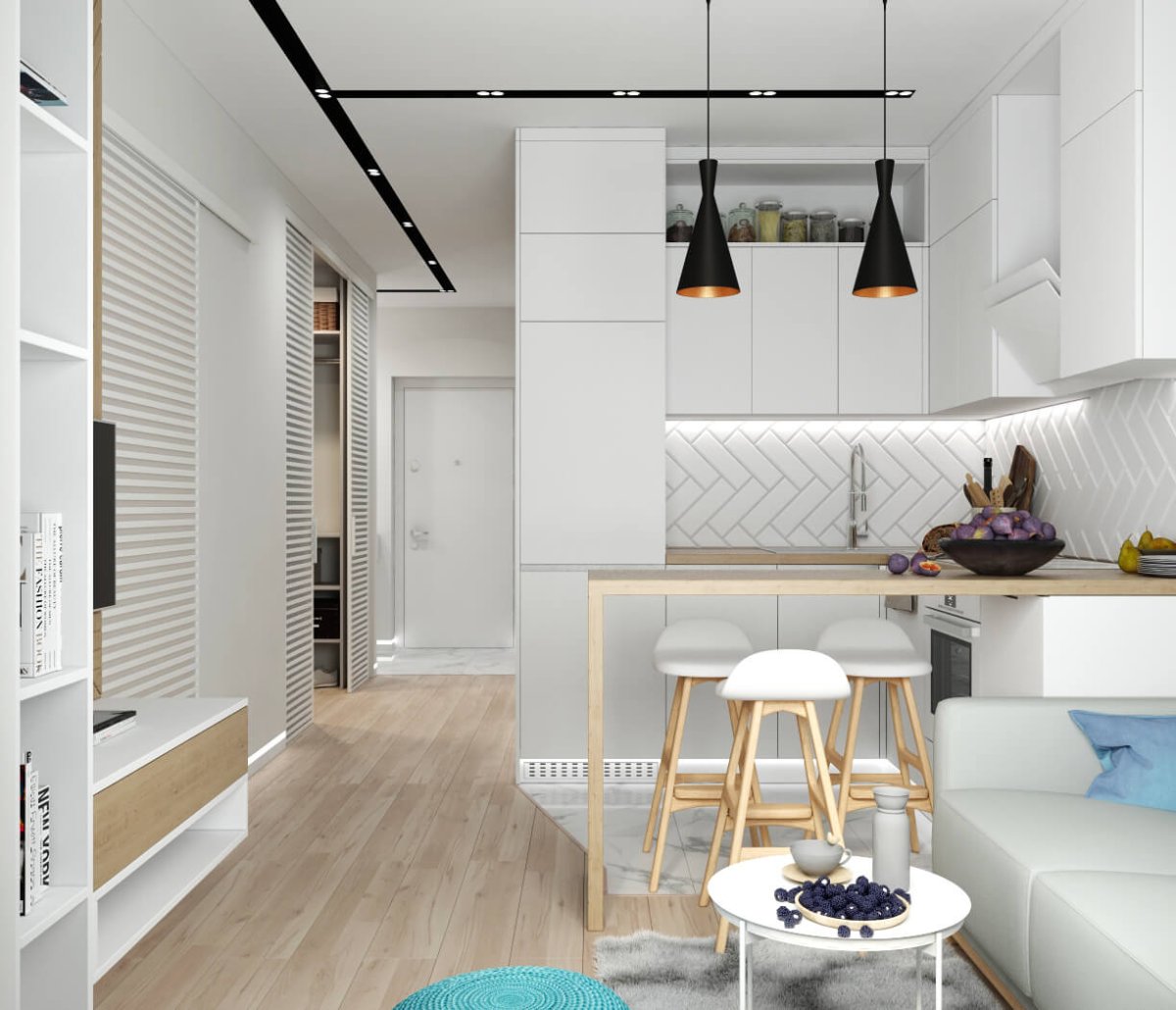 Квартира студия 30м2 интерьер Скандинавский стиль