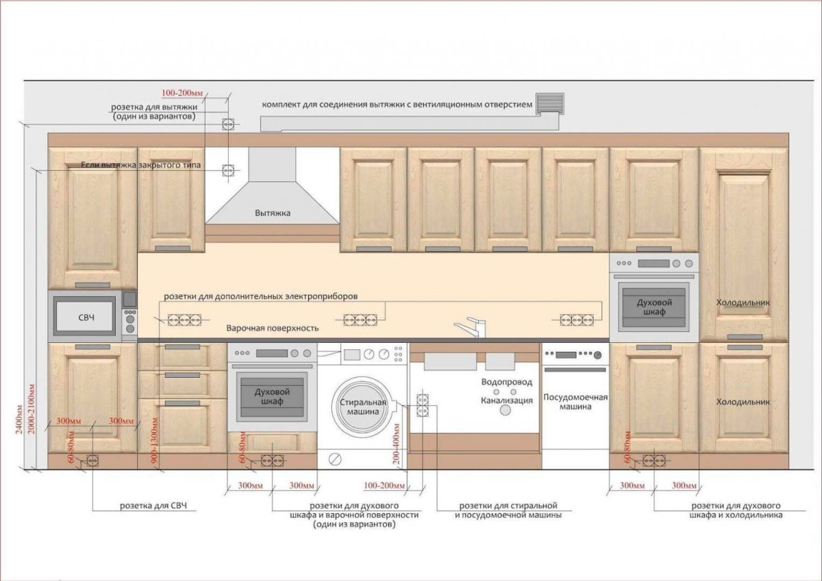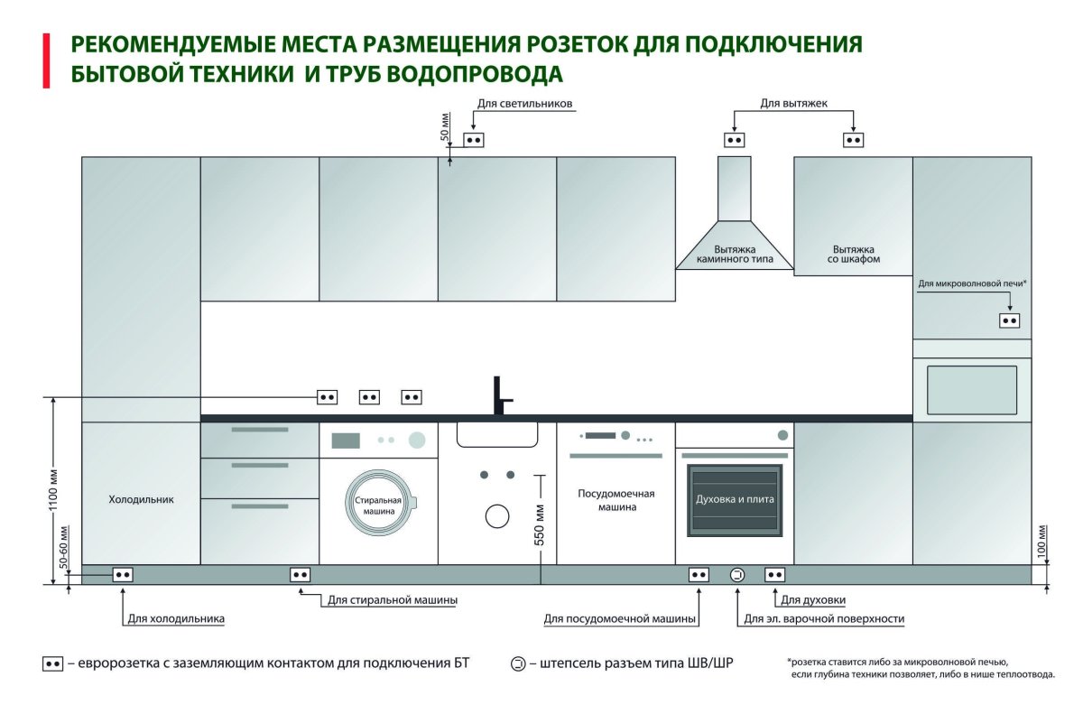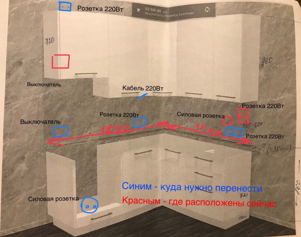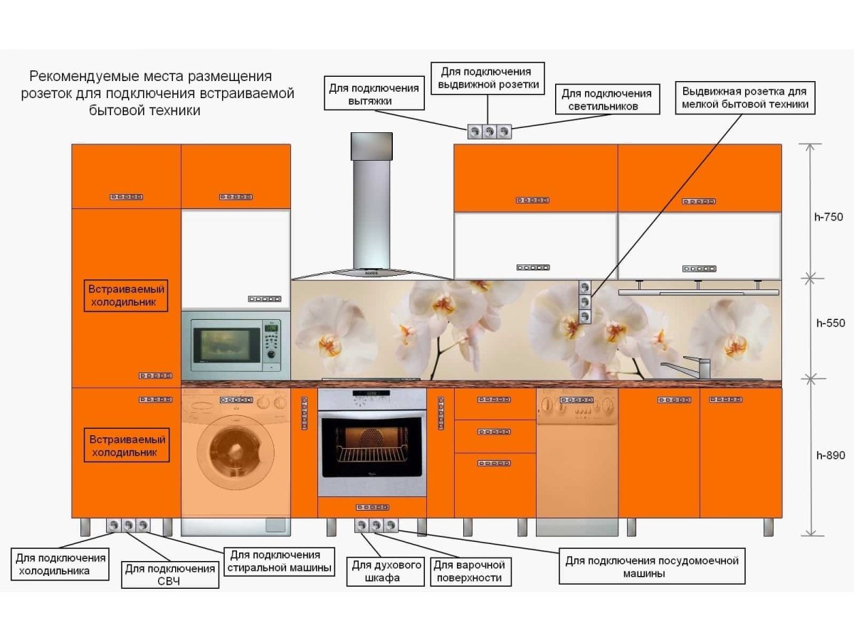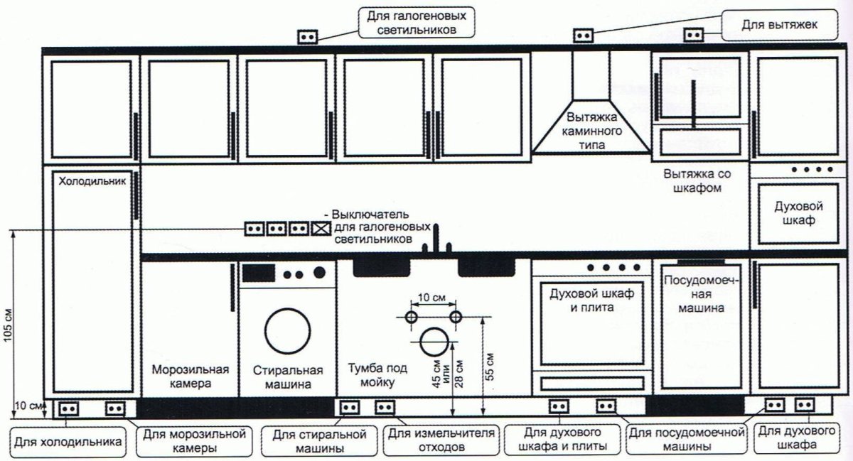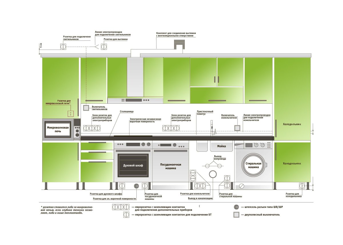 Схема разводки электропроводки на кухне под встраиваемую технику