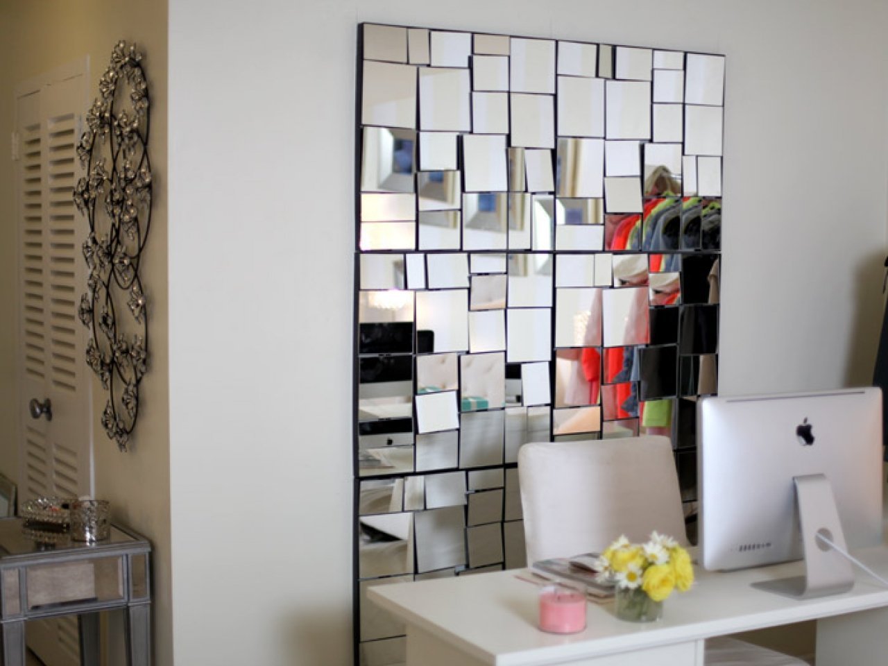 Декор из зеркал на стене