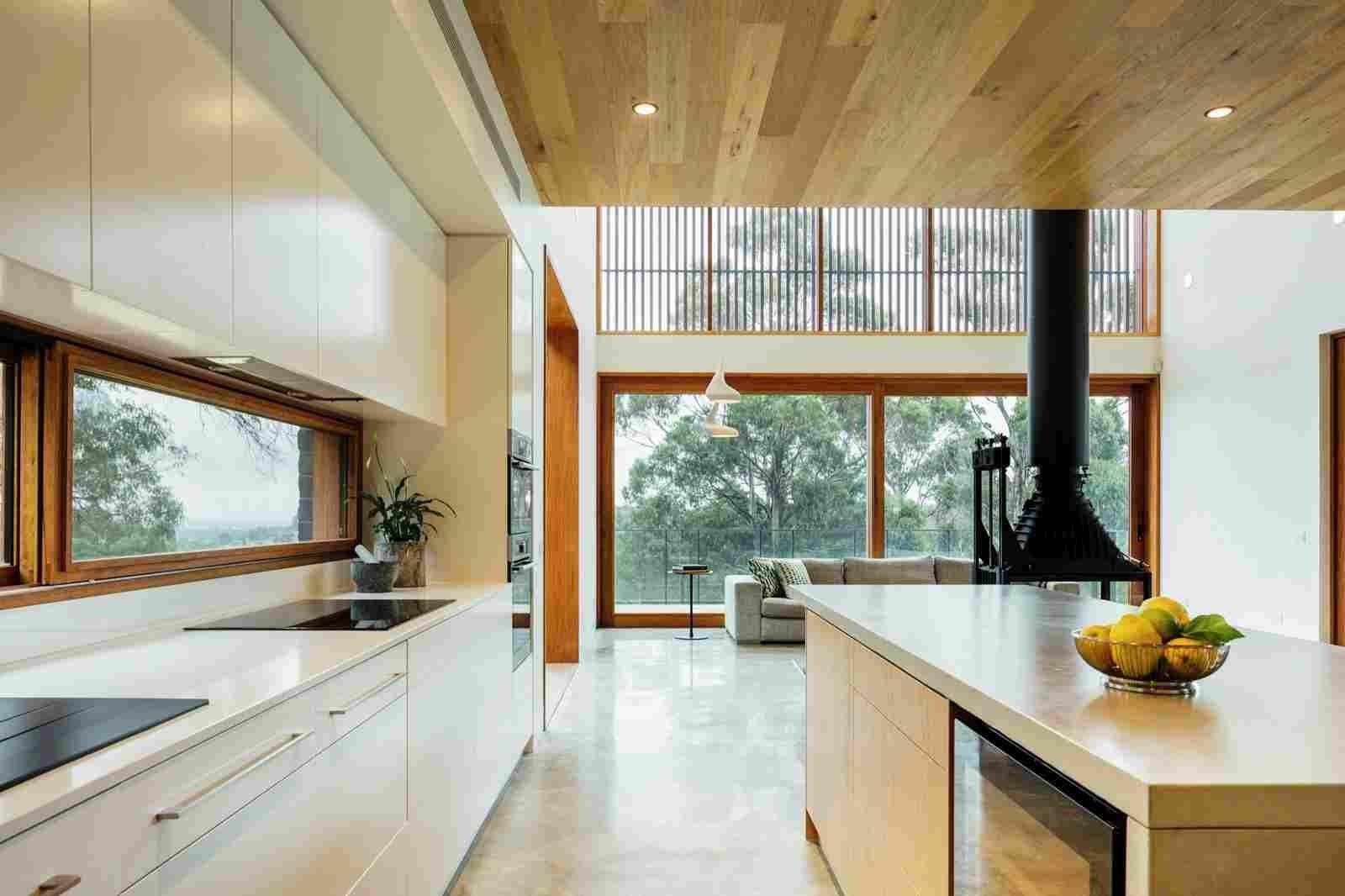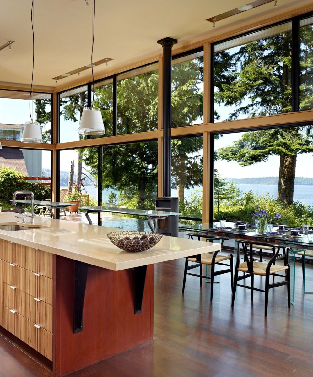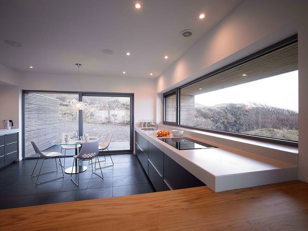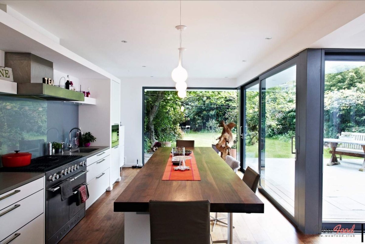 Кухня с панорамными окнами в частном доме