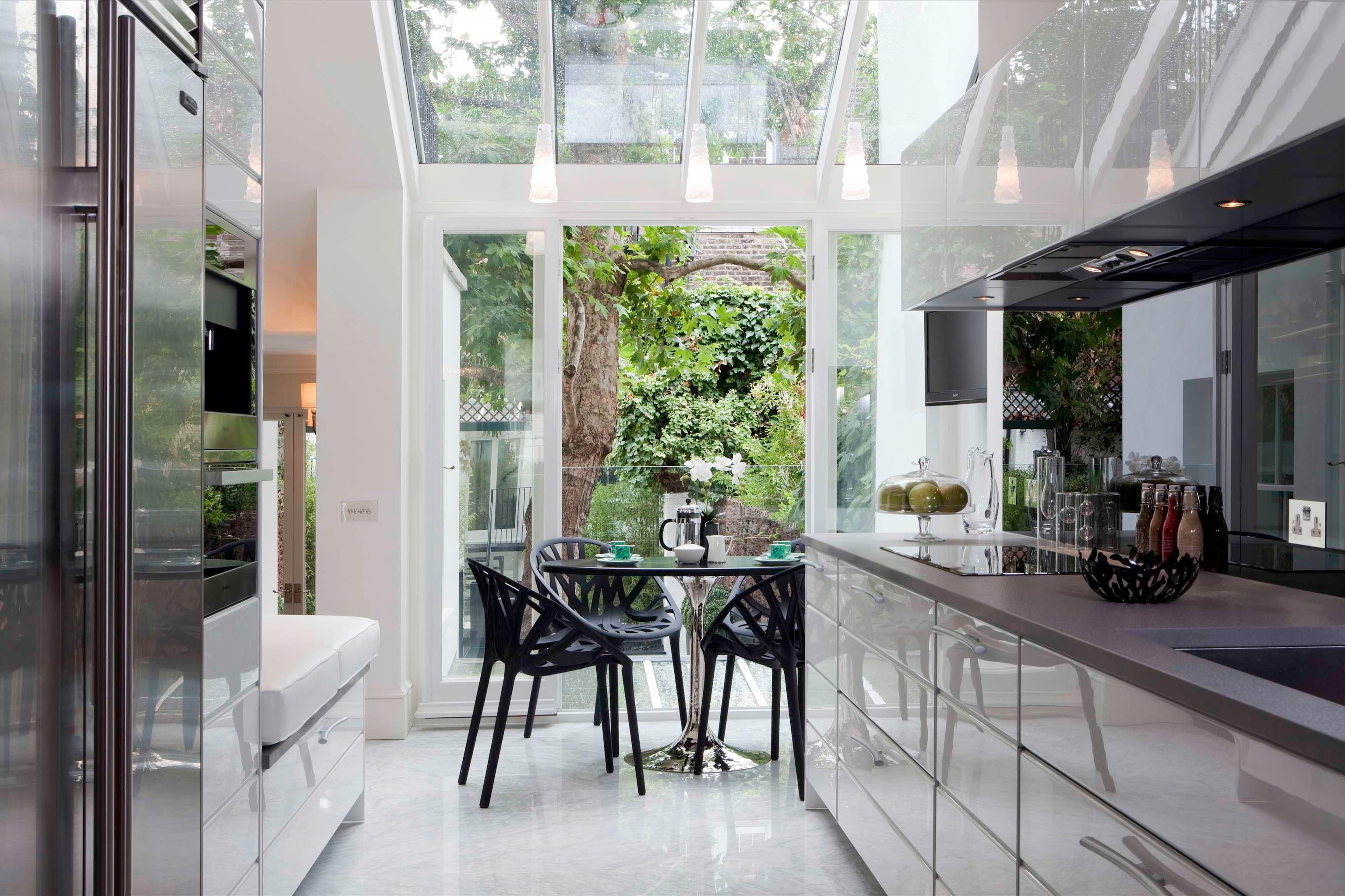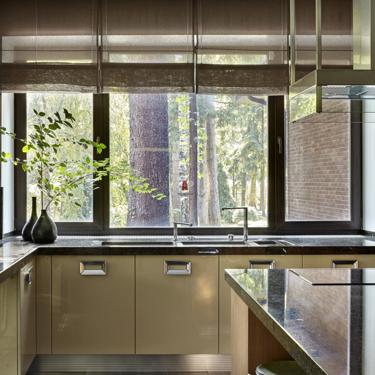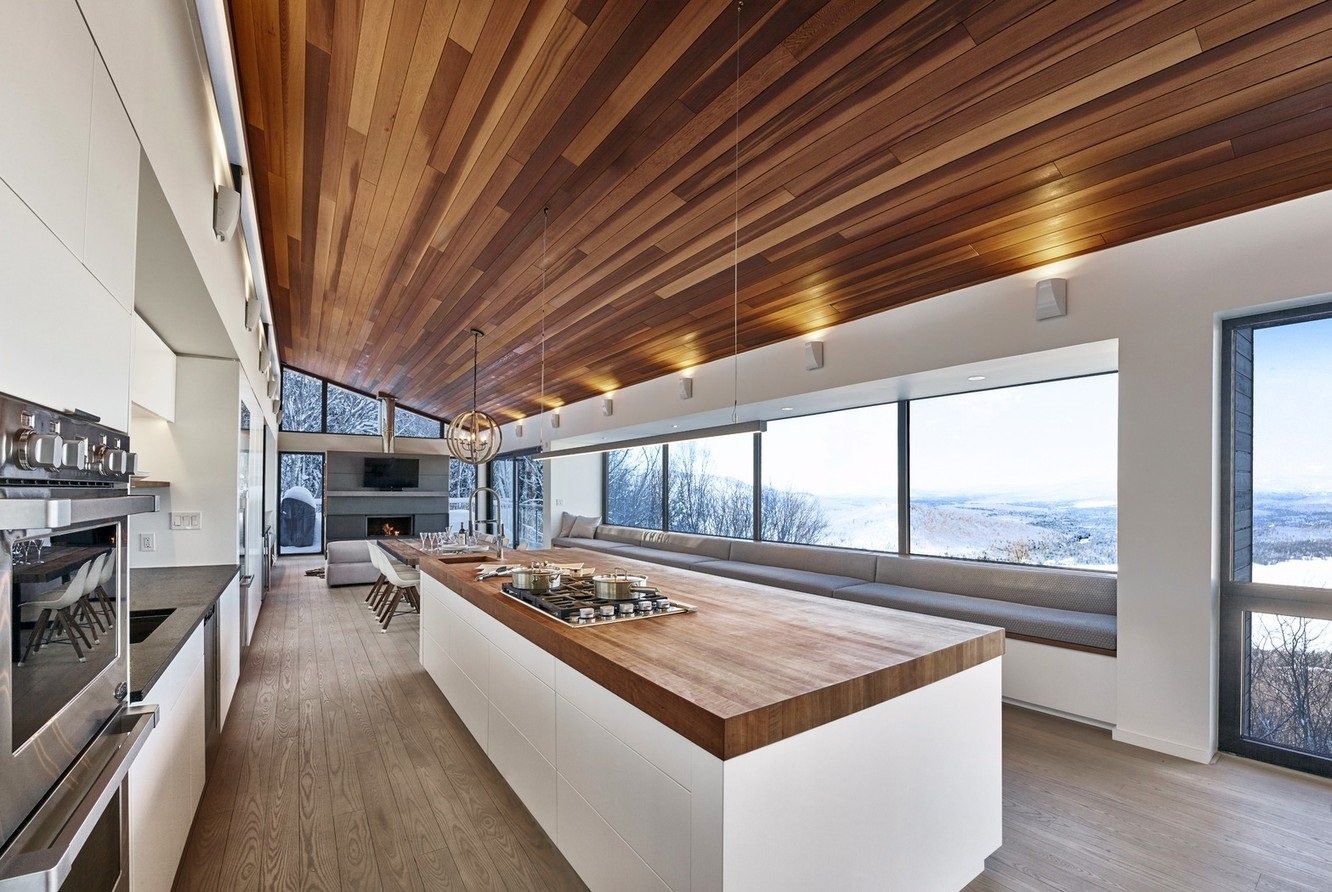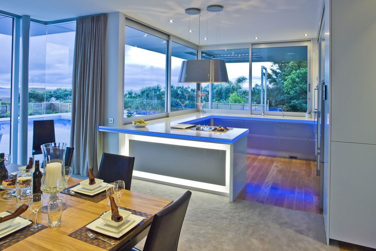 Кухня с панорамными окнами в частном доме
