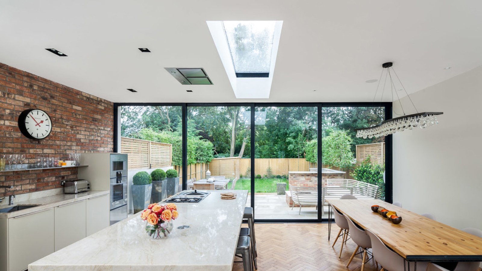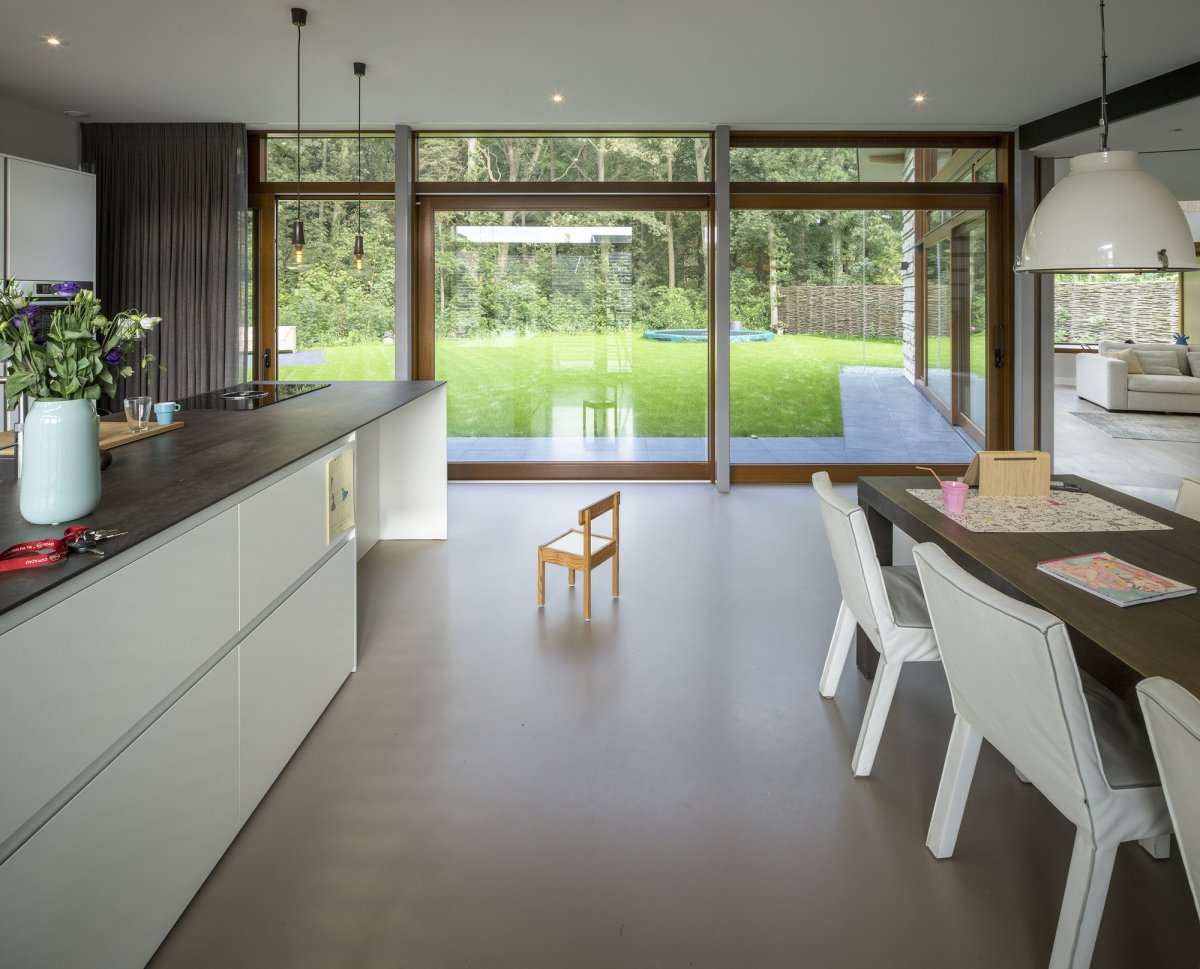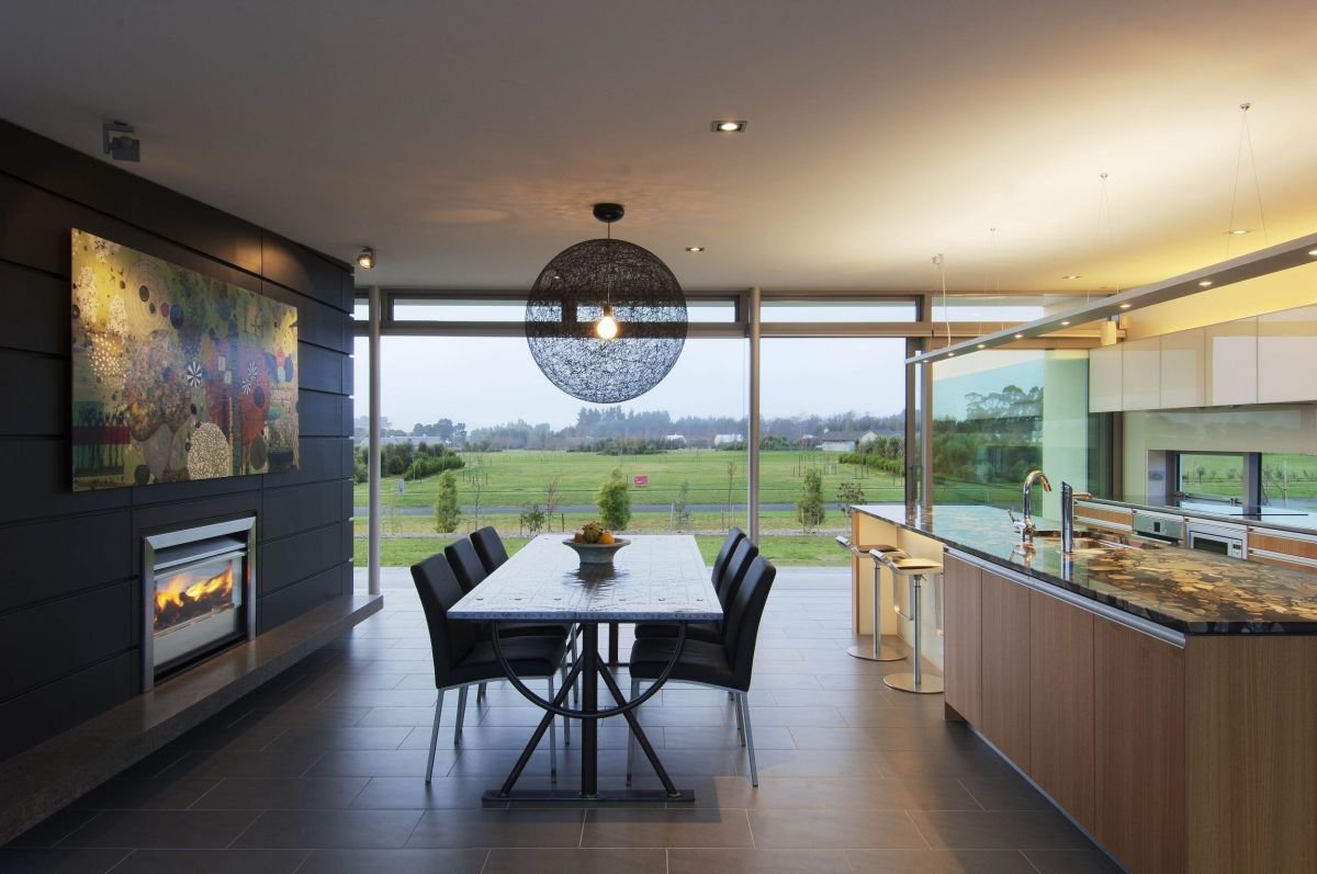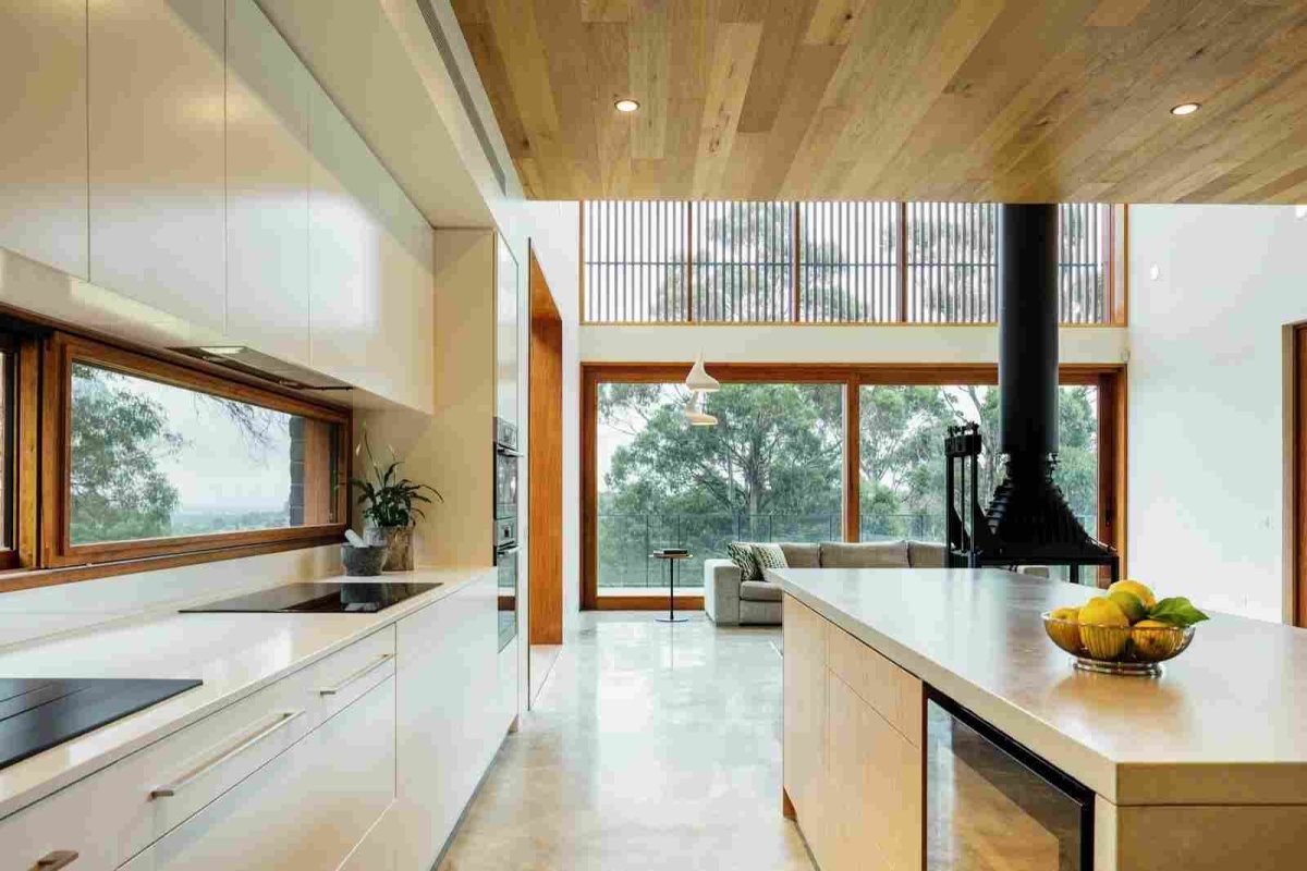 Кухня с панорамными окнами в частном доме
