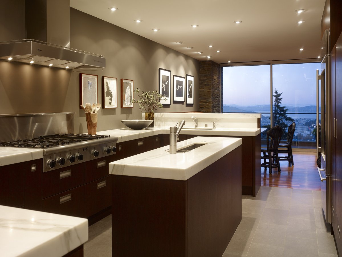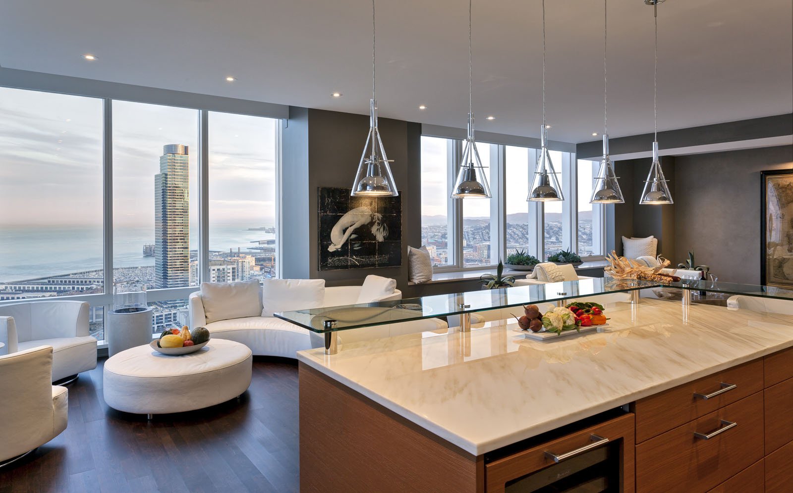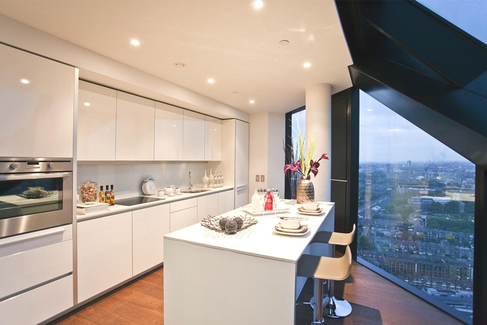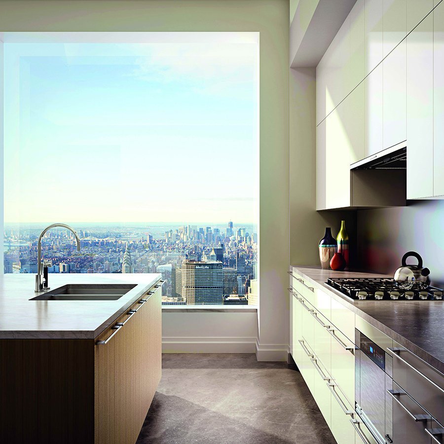 Кухня с панорамными окнами на Нью Йорк