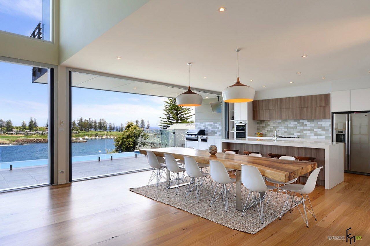 Кухни гостиные с панорамными окнами