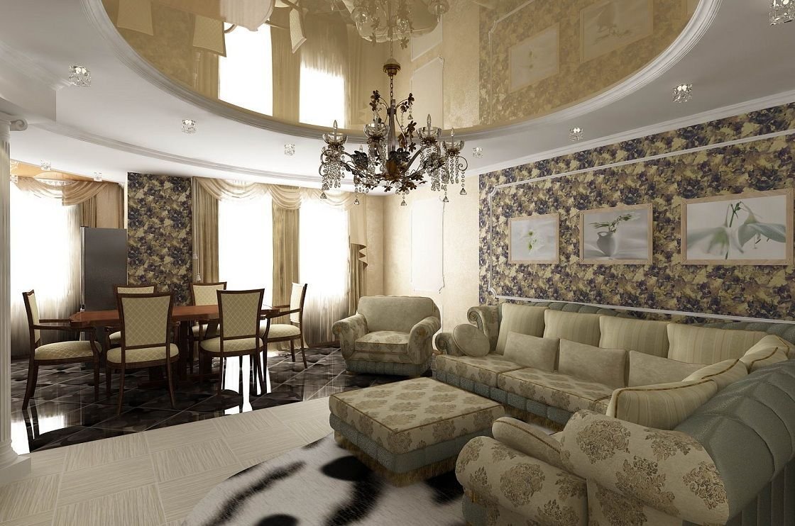 Натяжной потолок в классическом интерьере