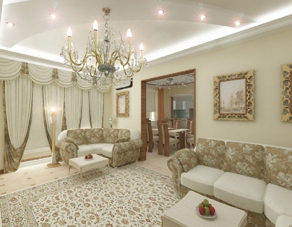 Потолки для зала из гипсокартона в классическом стиле
