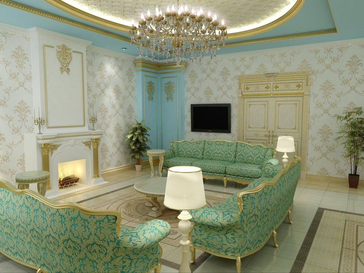 Голубая гостиная в классическом стиле