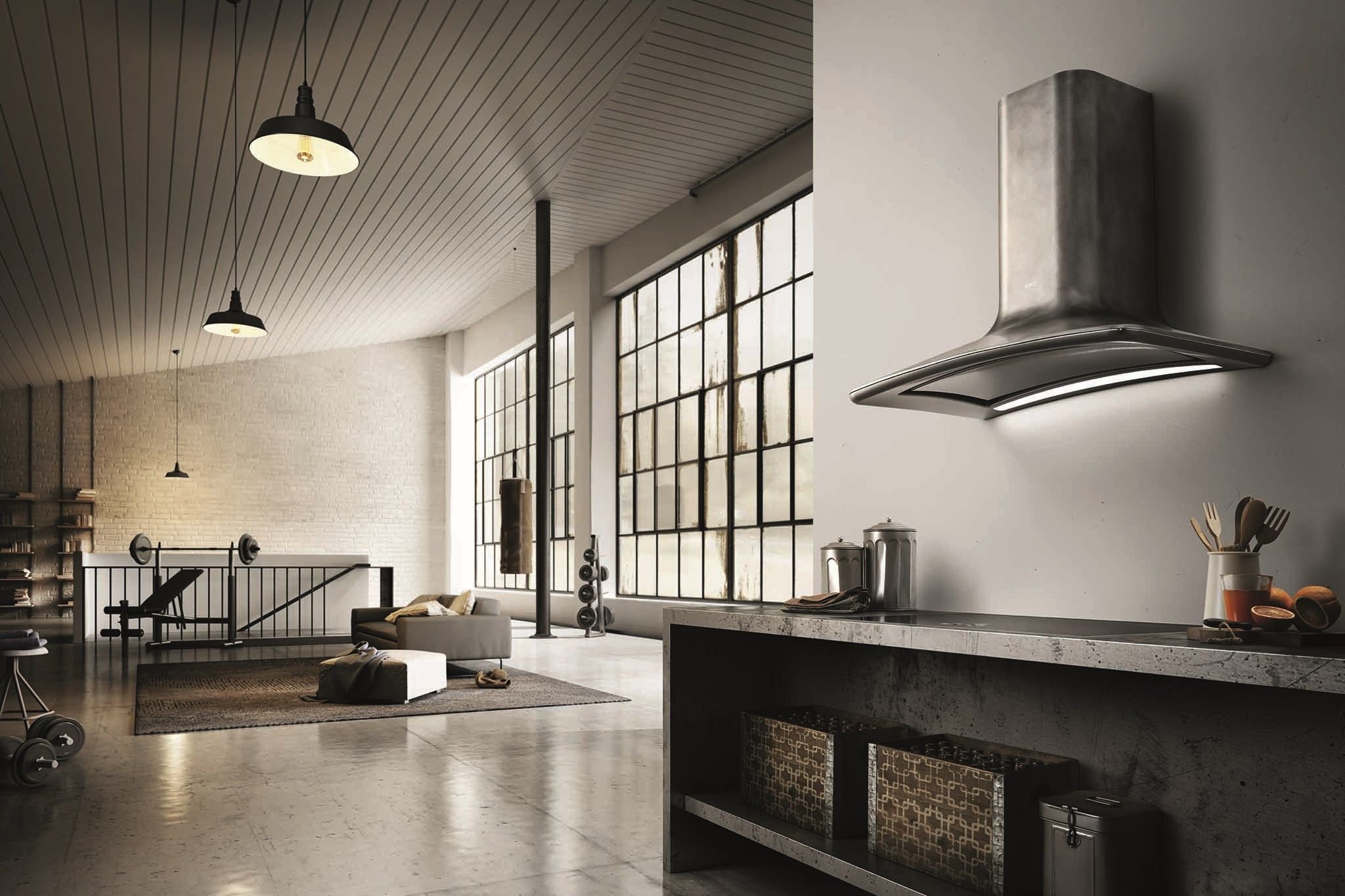 Вытяжка для кухни в интерьере лофт