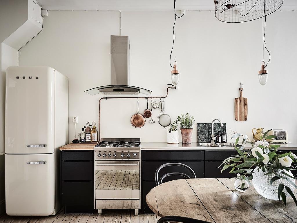 Кухня без верхних шкафов в скандинавском стиле