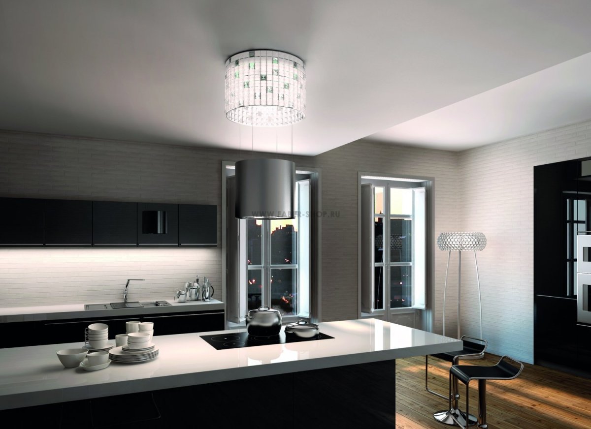 Цилиндрическая вытяжка в интерьере
