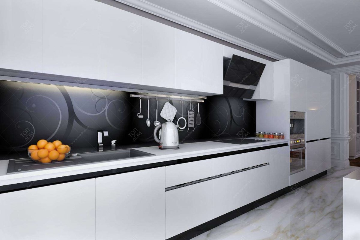 Черная вытяжка на белой кухне