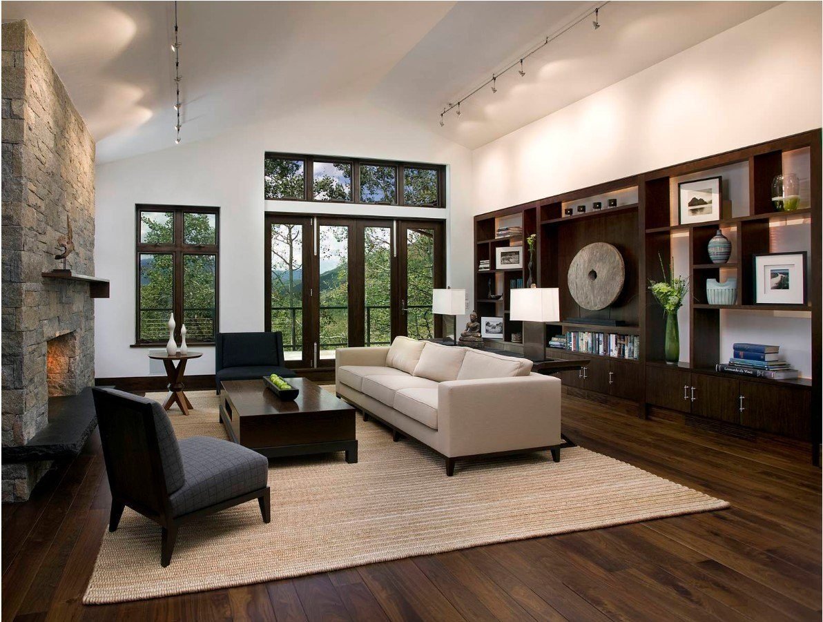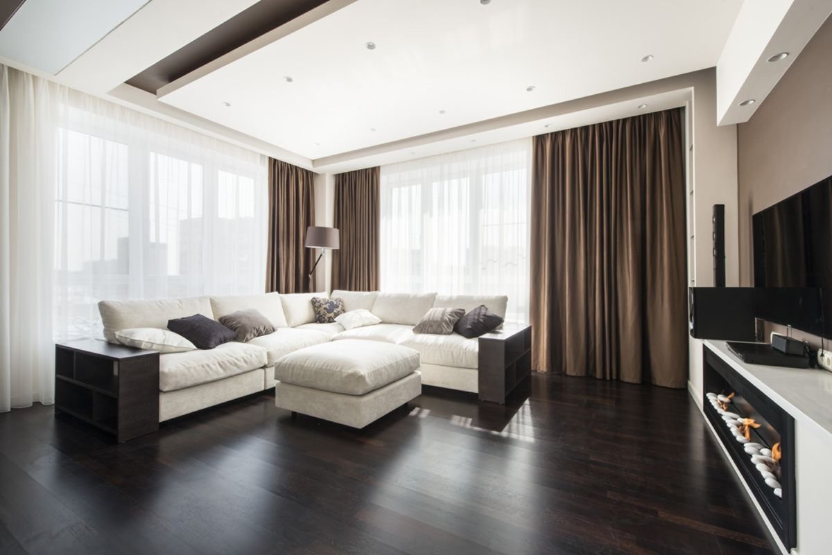 Гостиная с темным полом