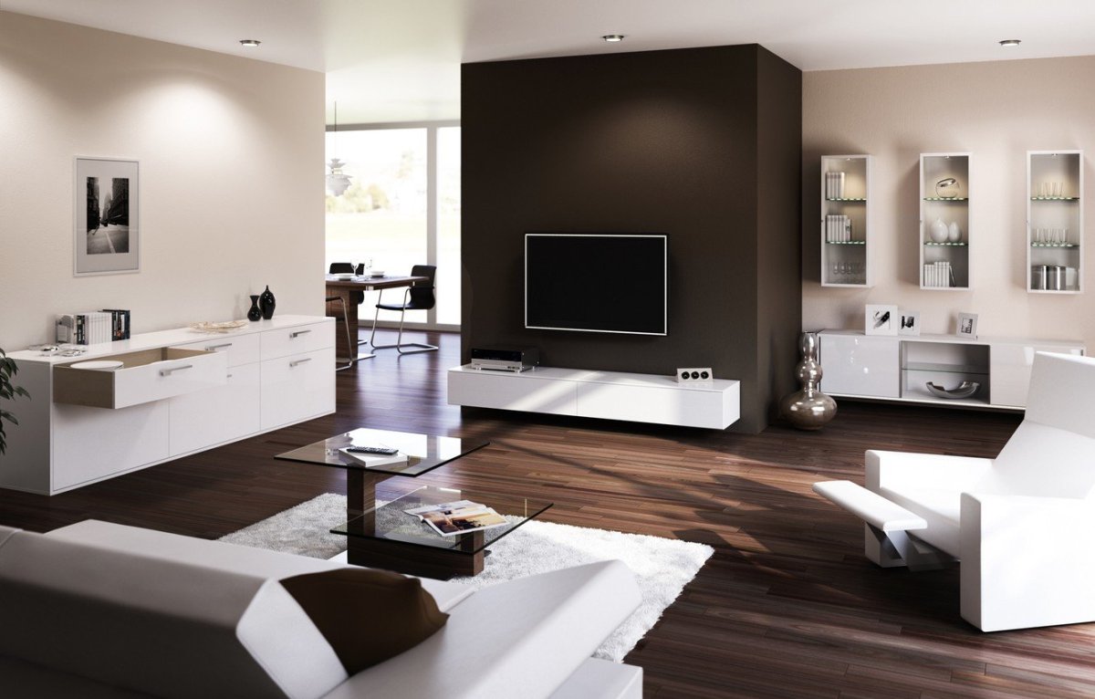 Коричневые стены в интерьере гостиной