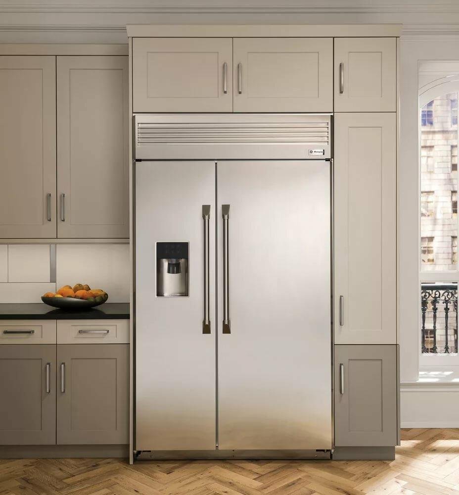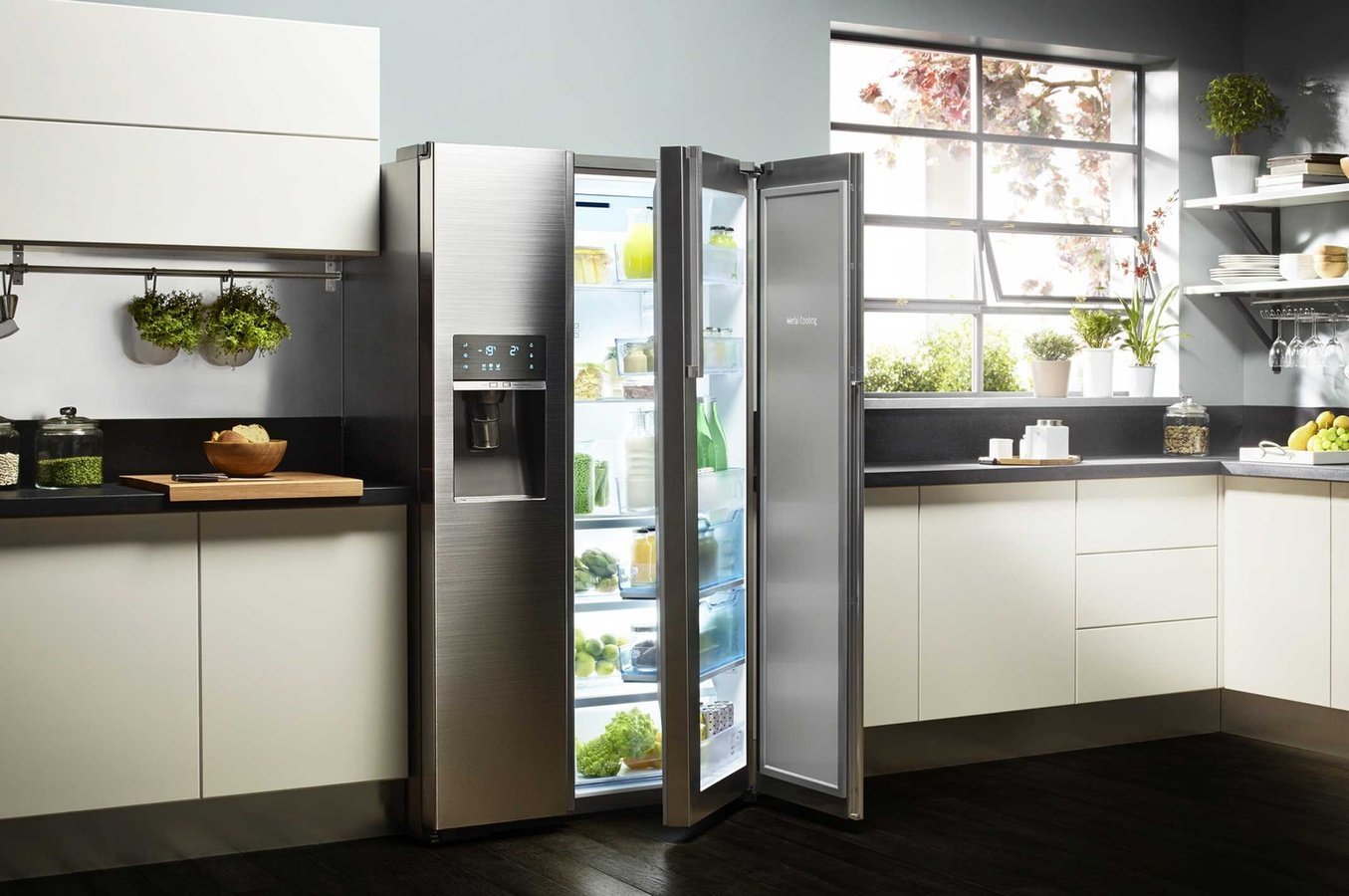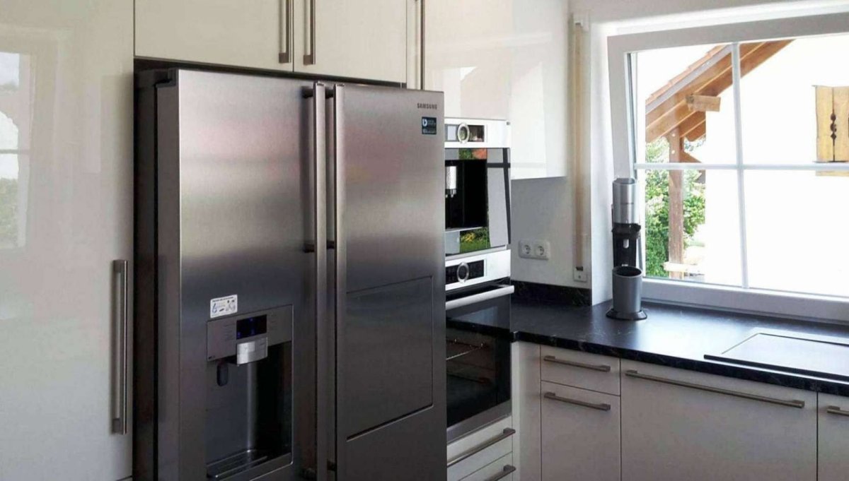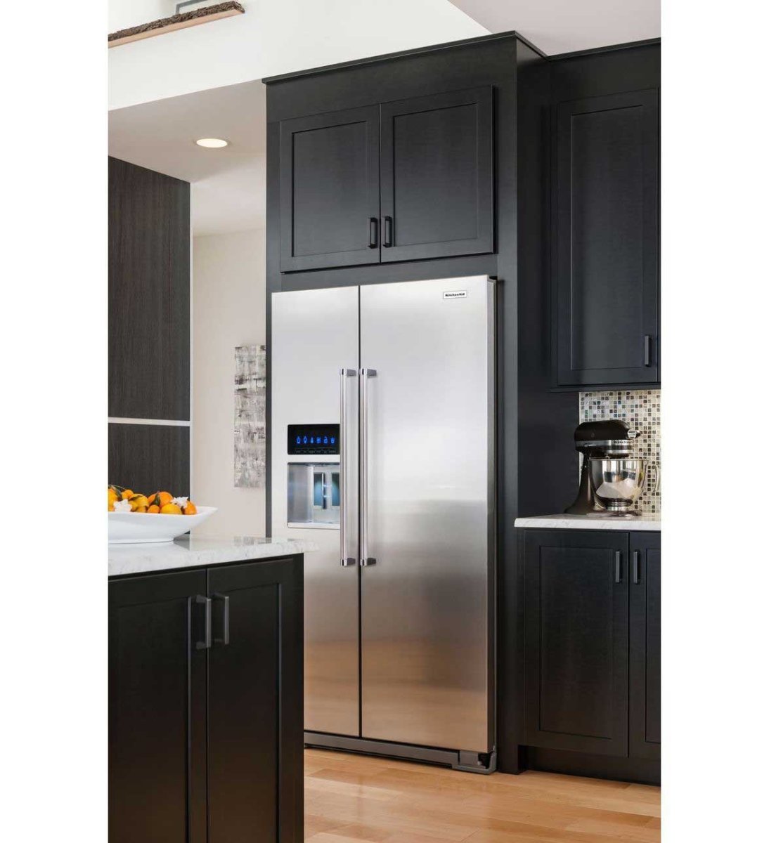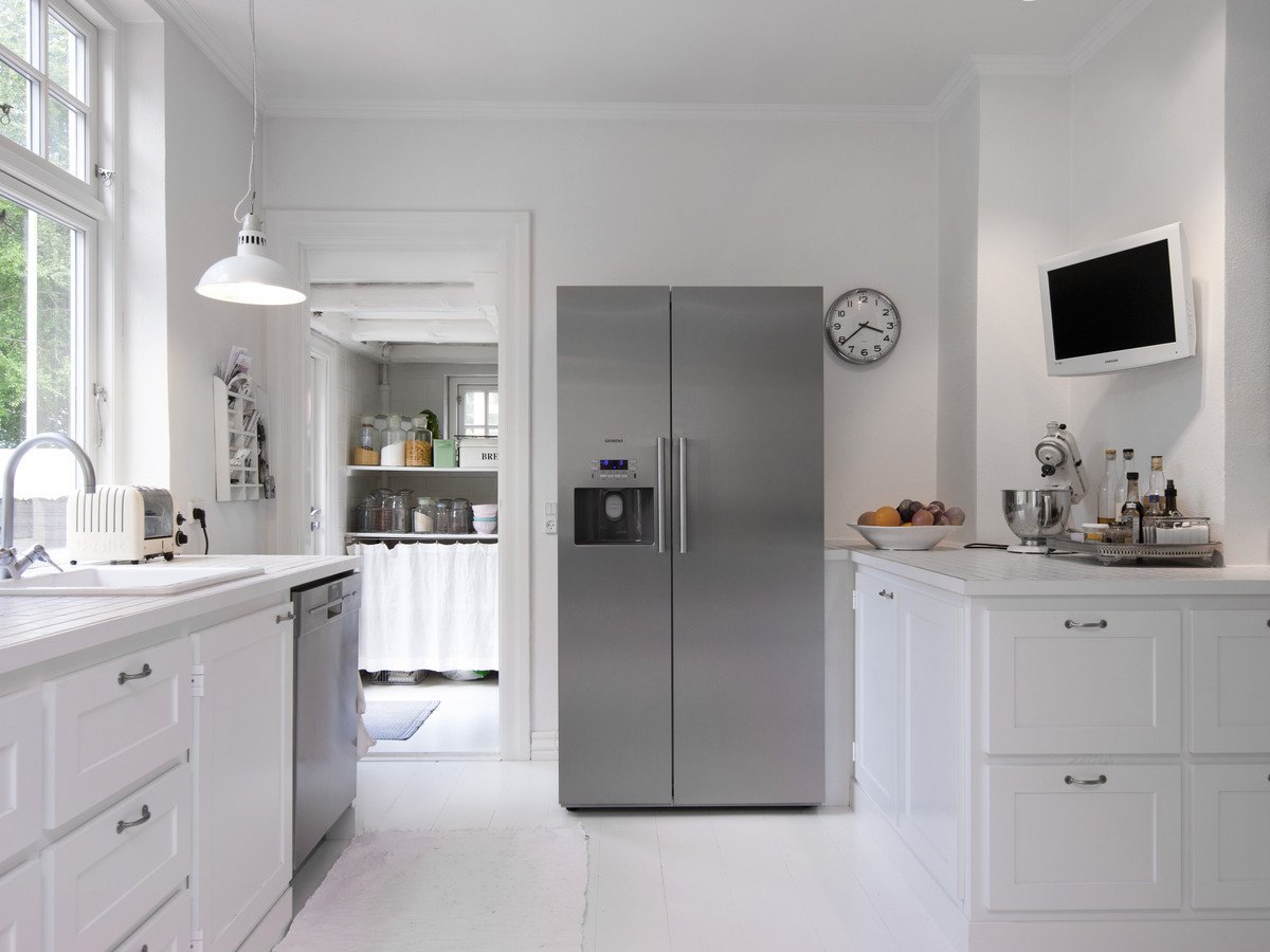 Холодильник Сайд-бай-Сайд в интерьере с кухней икеа