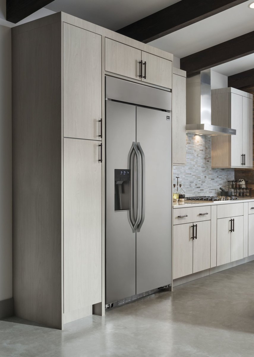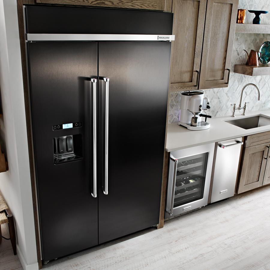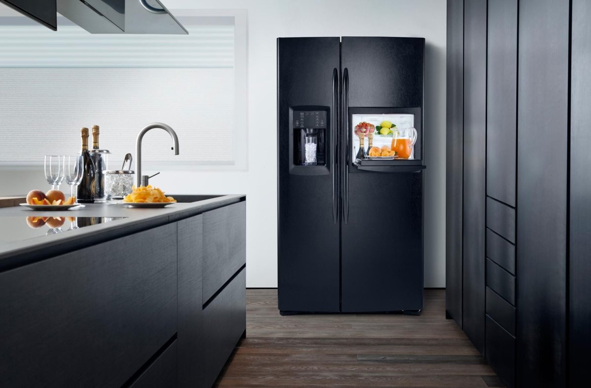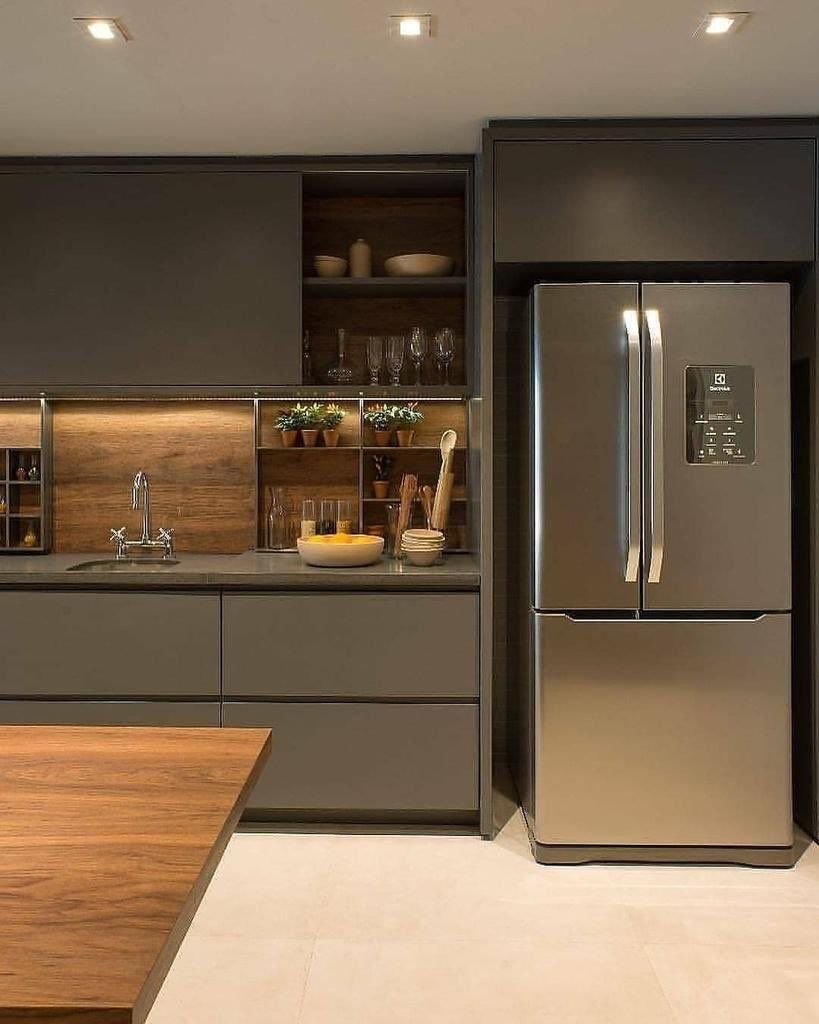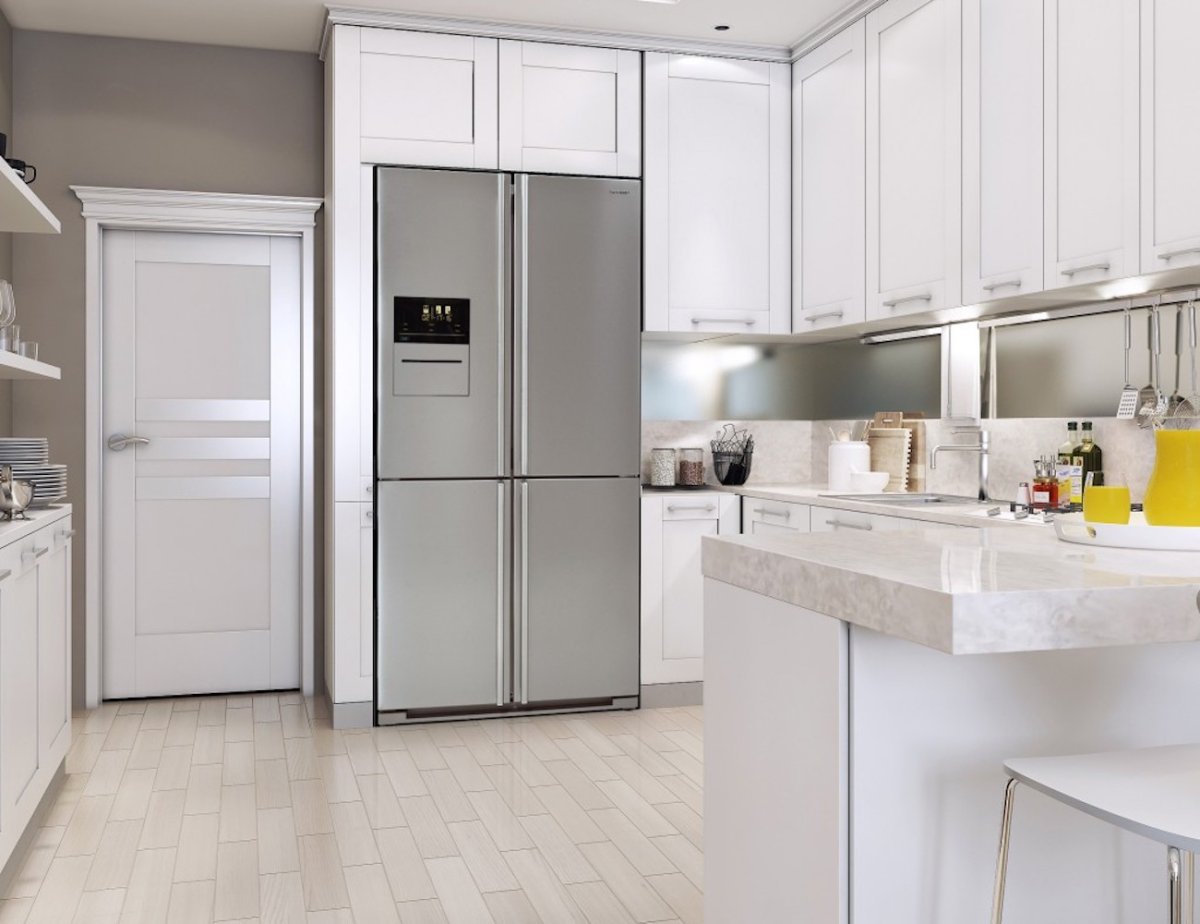 Холодильник Сайд-бай-Сайд в интерьере с кухней икеа