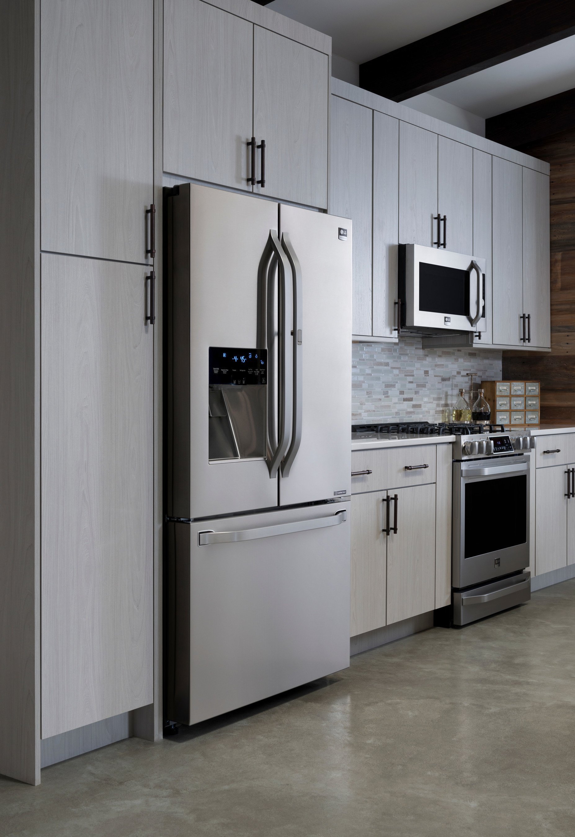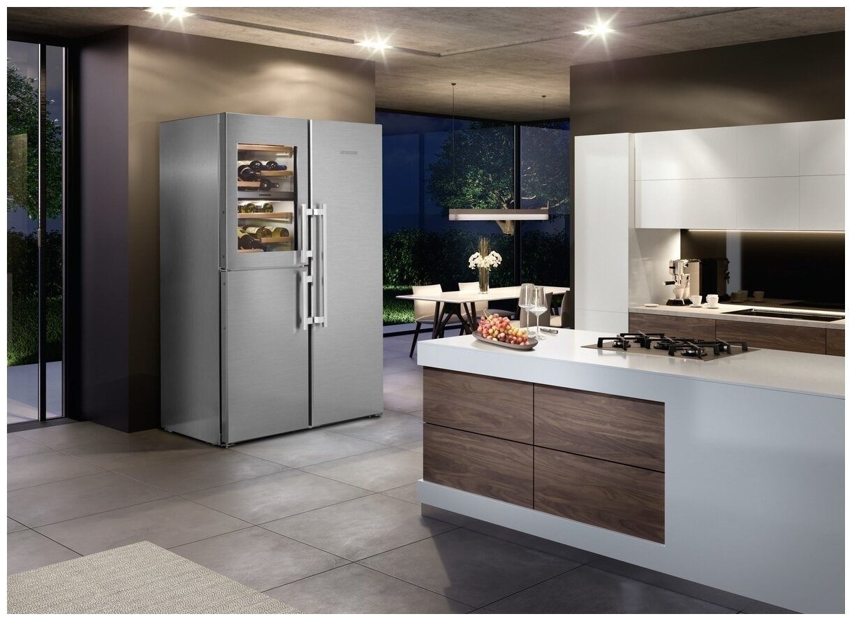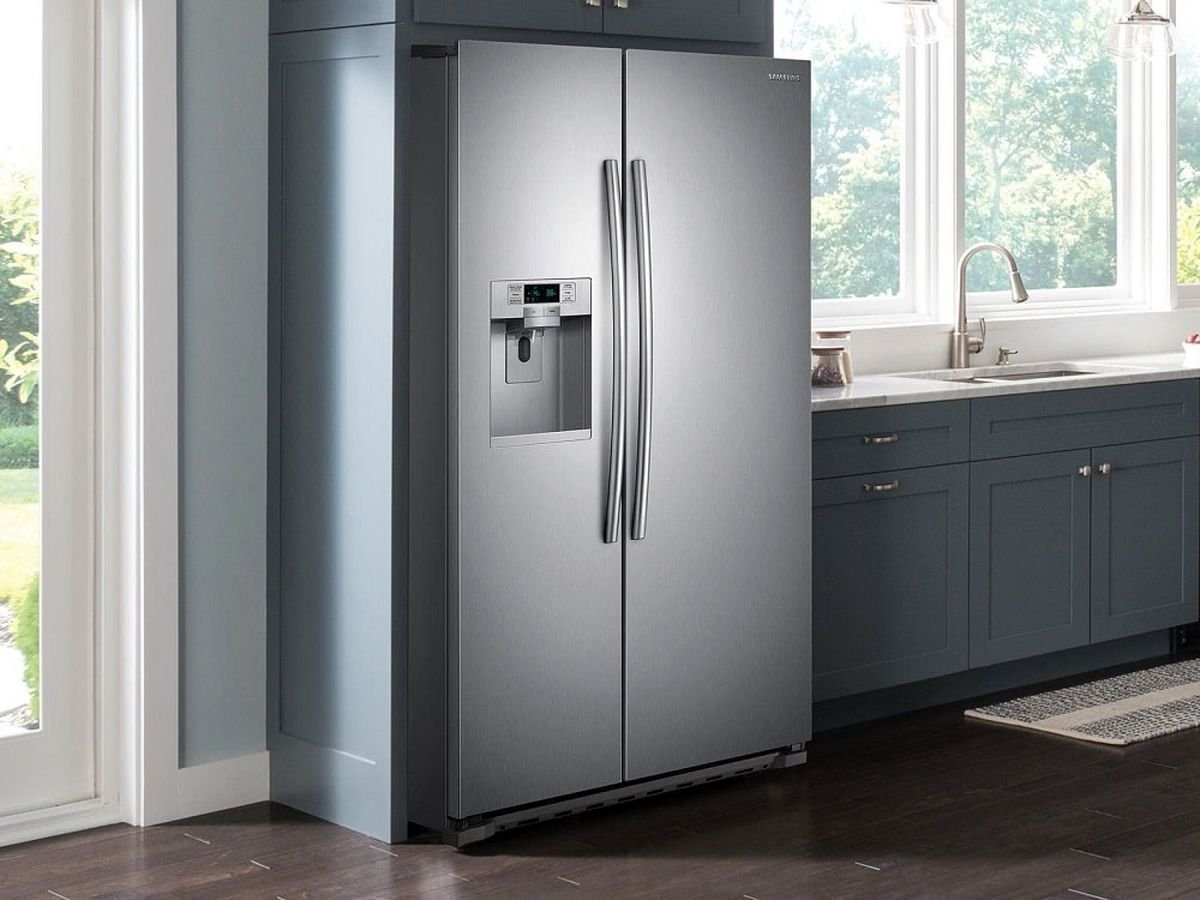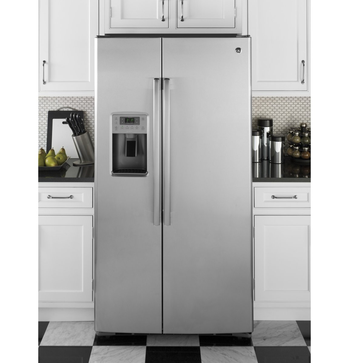 Холодильник Сайд-бай-Сайд в интерьере с кухней икеа