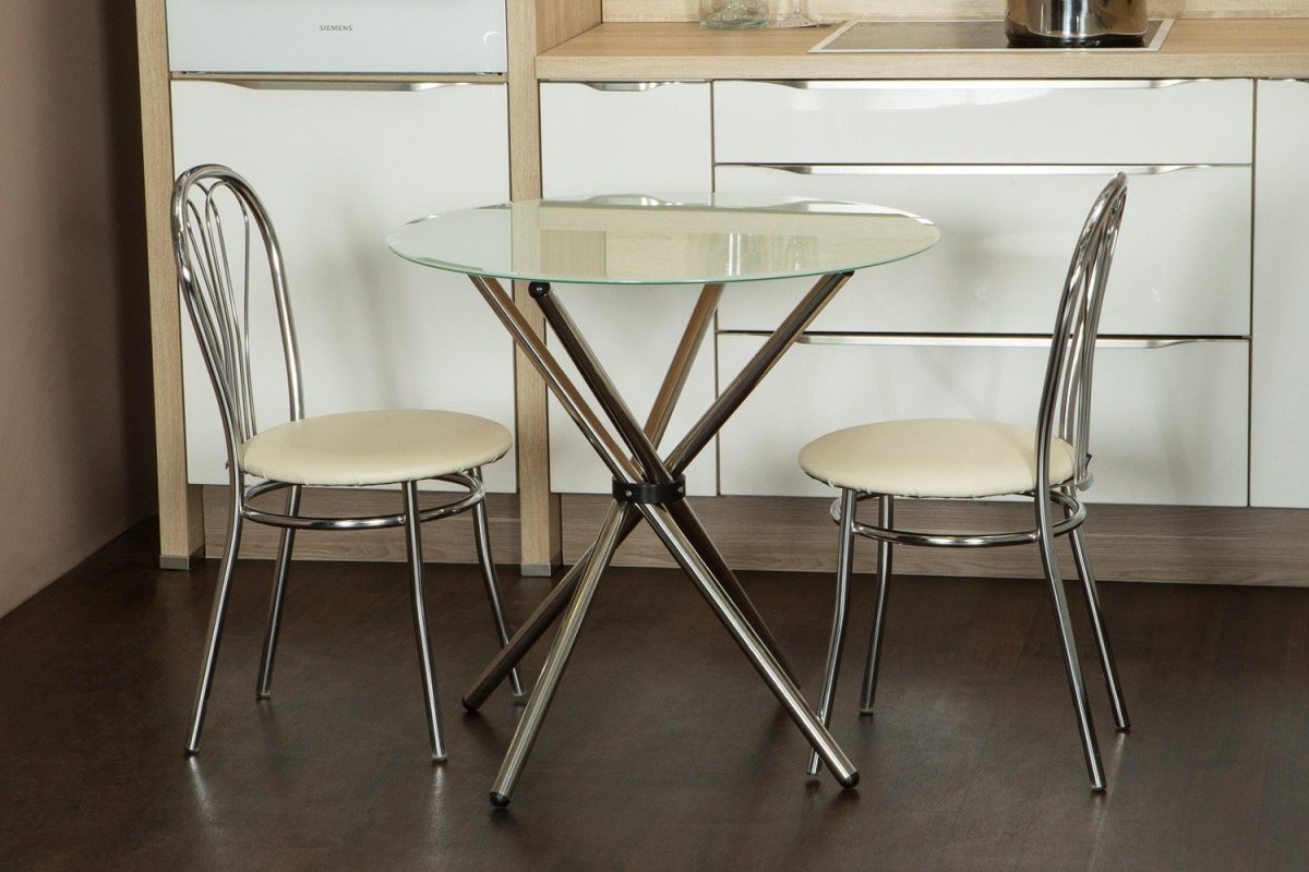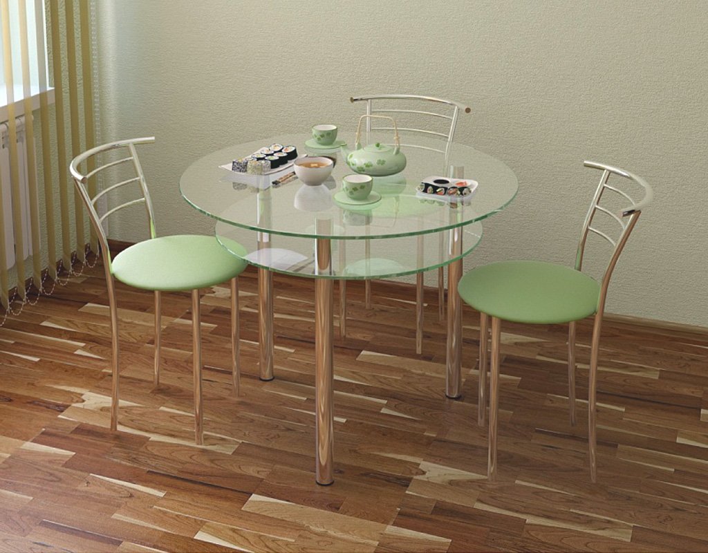 Круглый стеклянный стол на кухню
