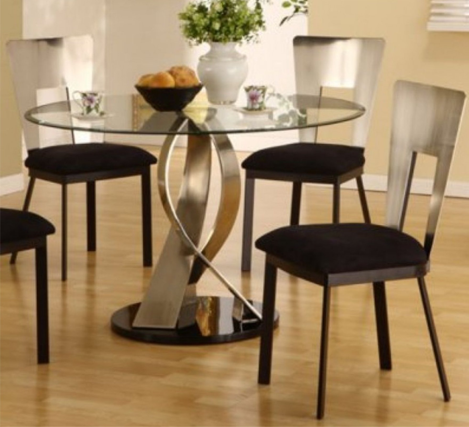 Круглый стеклянный стол со стульями