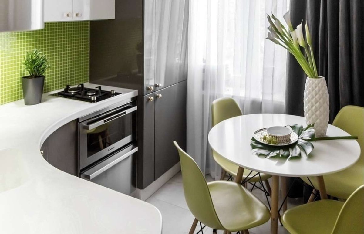 Круглый стол в интерьере маленькой кухни