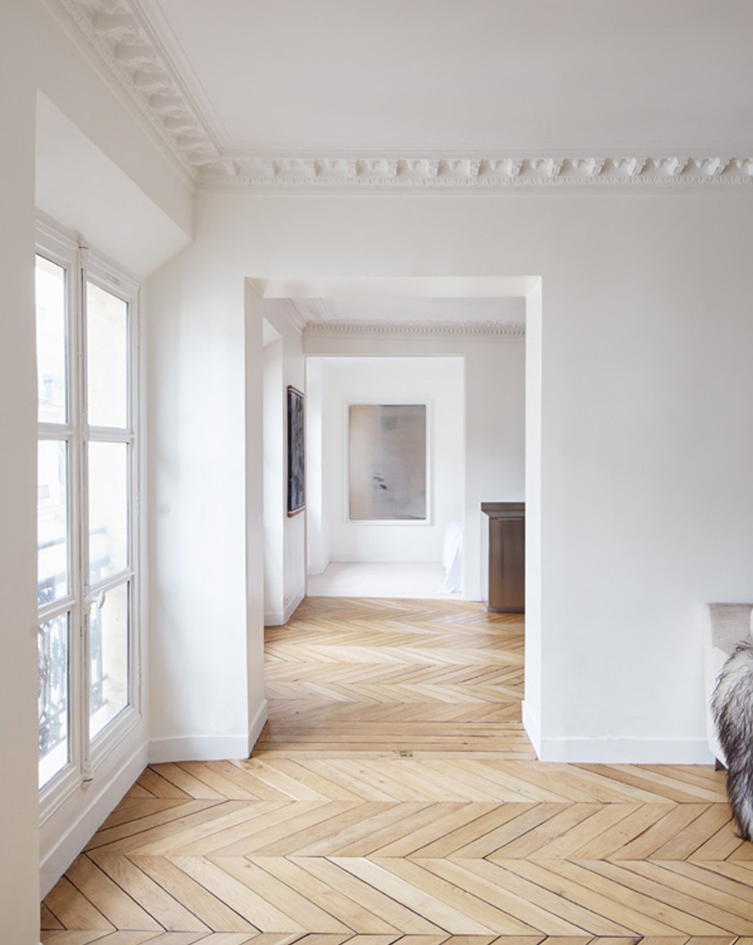 Паркет и белые стены