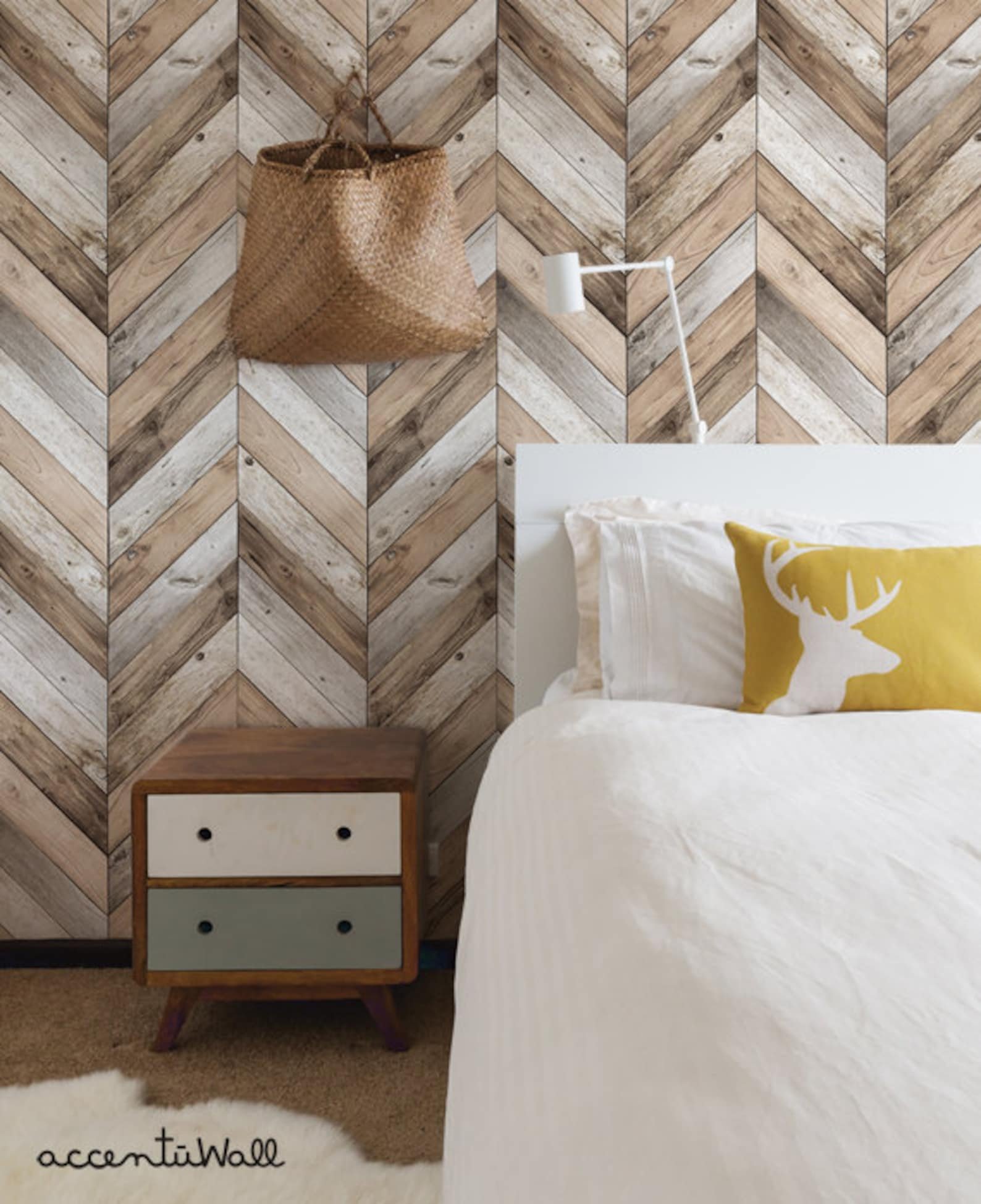 Ламинат елочкой на стене в интерьере