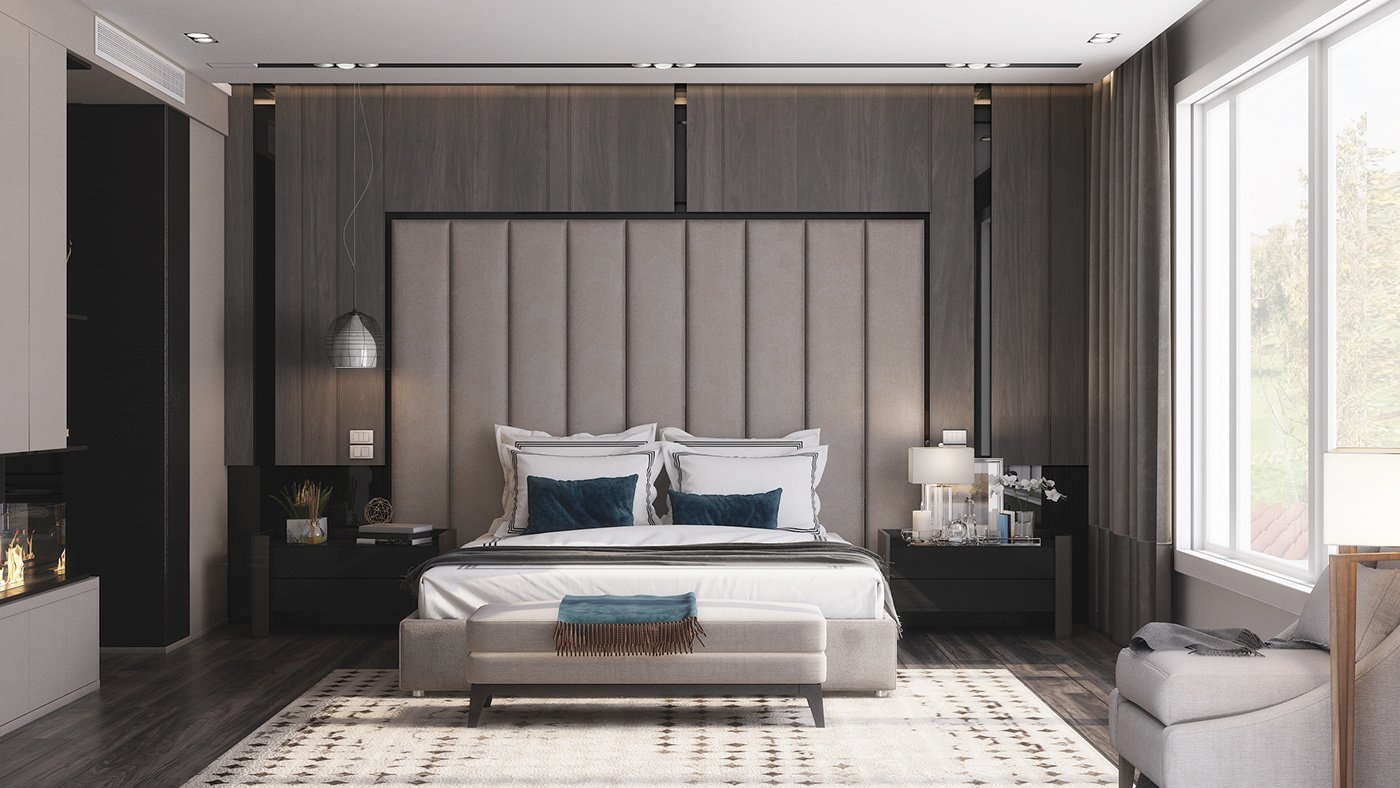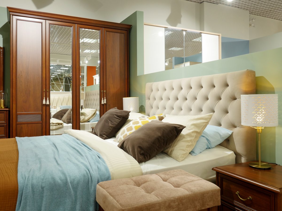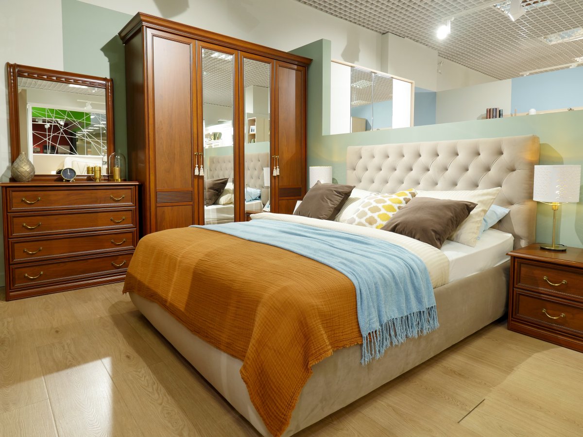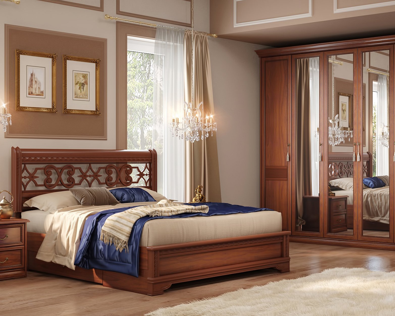 Спальня в классическом стиле с коричневой мебелью